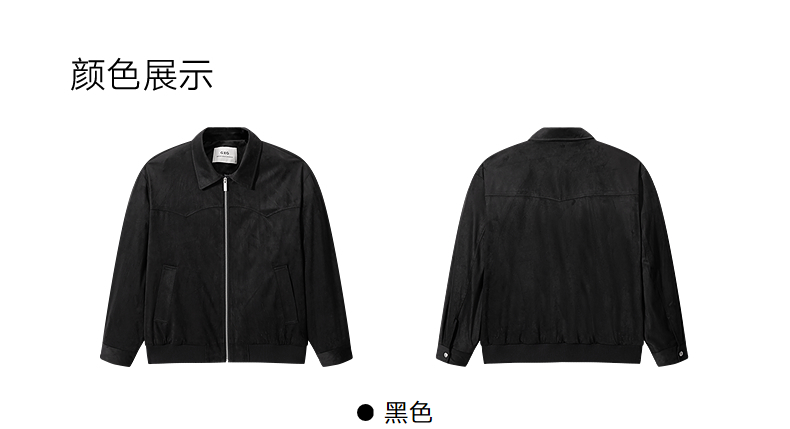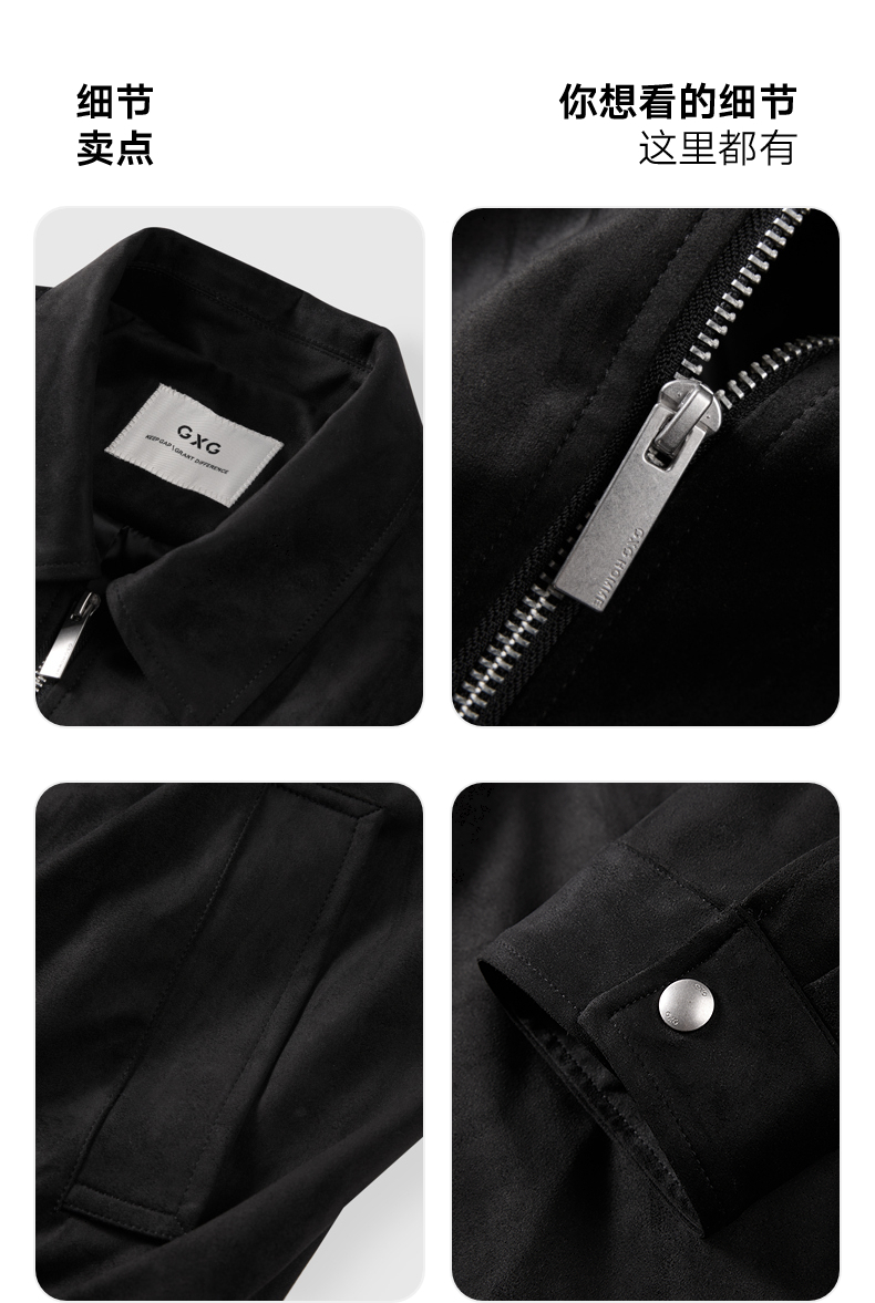 GXG男装 基础黑色仿麂皮翻领通勤行政夹克外套 2025春季热卖