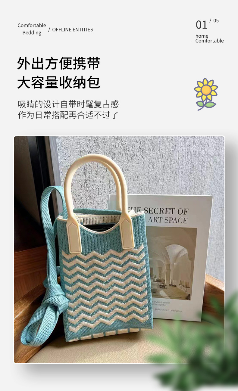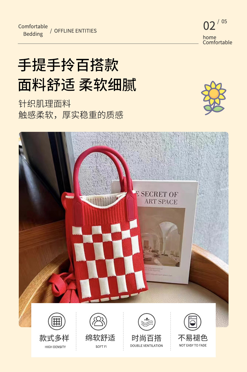 立减20【韩版针织甜美手提包,便携收纳斜挎包!】新款手机包女 韩版针织甜美手提包 斜挎百搭学生包 便携女士收纳斜挎包-QQ#异业福利