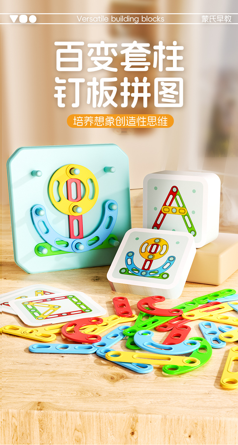 *【培养想象创造性思维】蒙氏百变几何套柱拼装玩具 百变套柱钉板拼图 3-6岁幼儿园益智早教配对桌面游戏 让宝宝全面发展