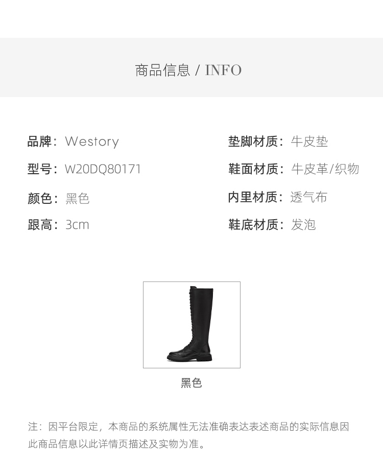 westory2020早秋新品马丁靴女鞋平底牛皮革系带长靴W20DQ80171