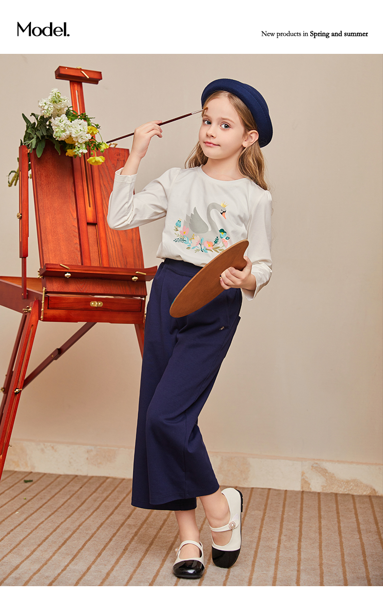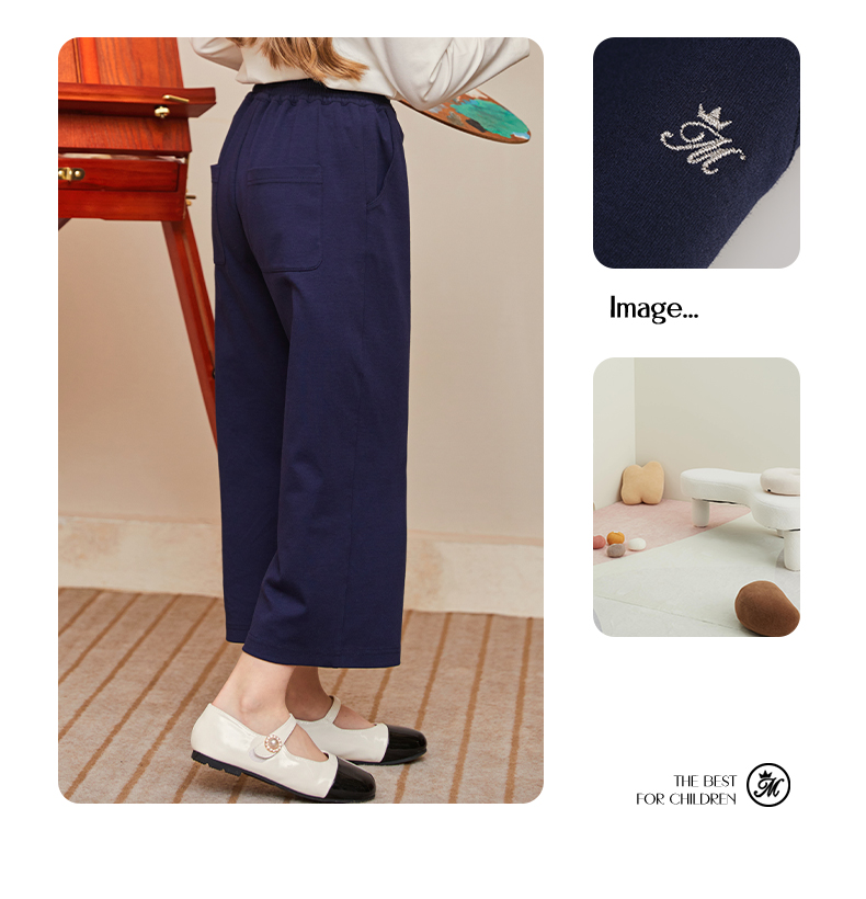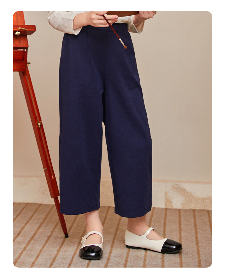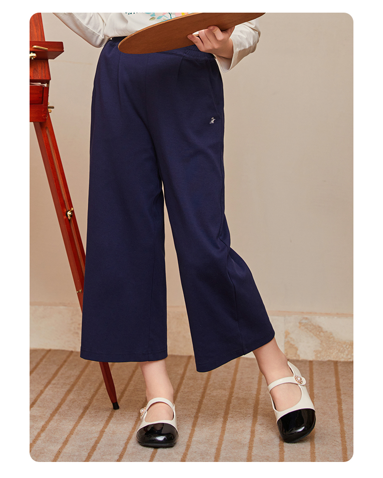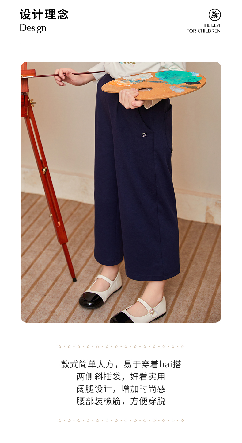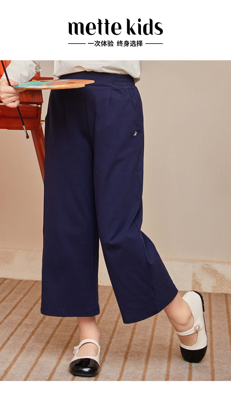 mettekids女童裤子儿童春装洋气阔腿裤童装中大童休闲宽松九分裤