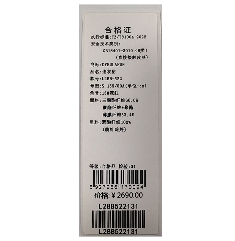 戴布拉芬连衣裙L28B522