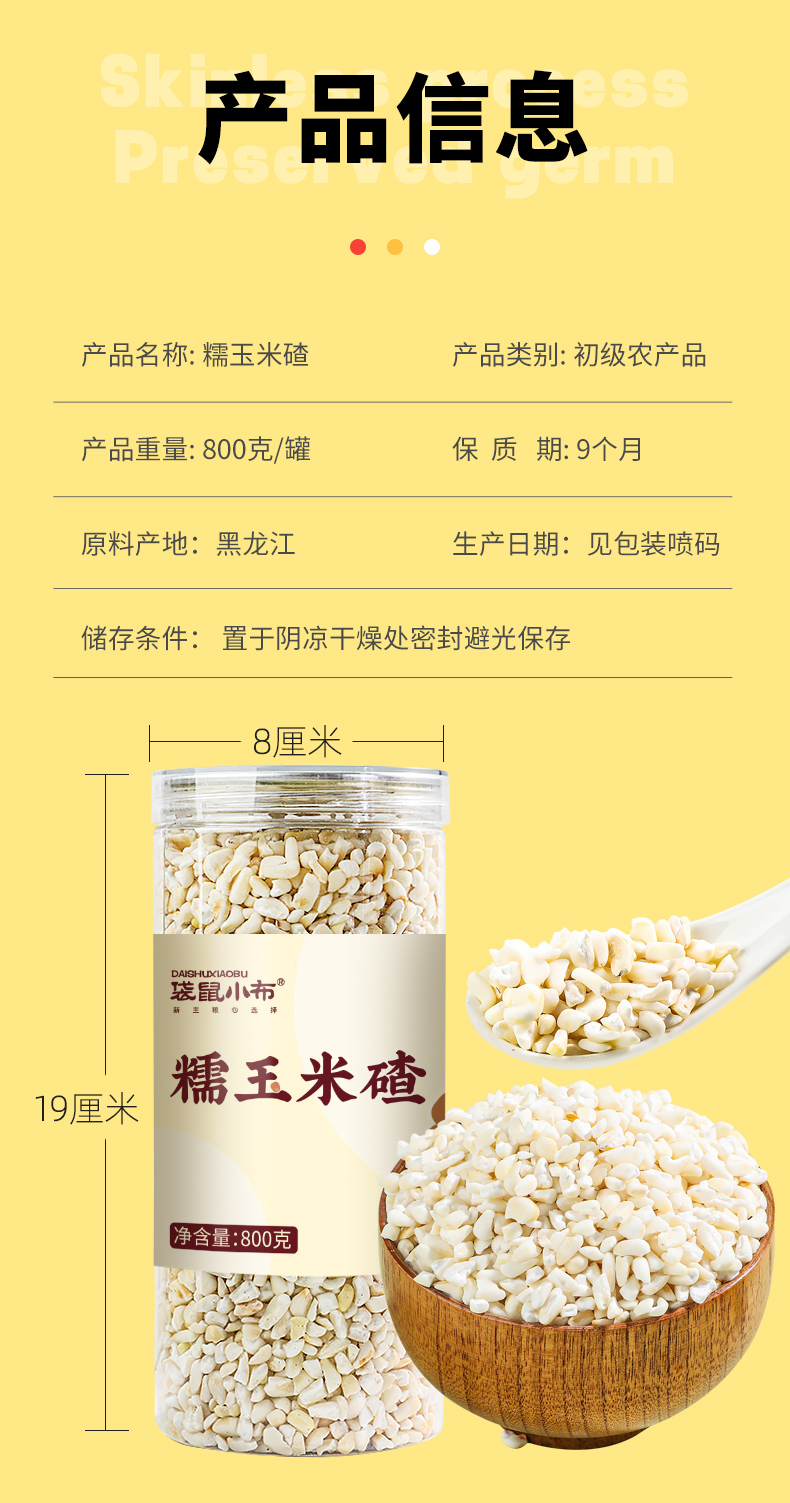 袋鼠小布白糯玉米碴子800g/罐 精选优质原料 口感香糯 营养健康 粗粮佳品 速食方便