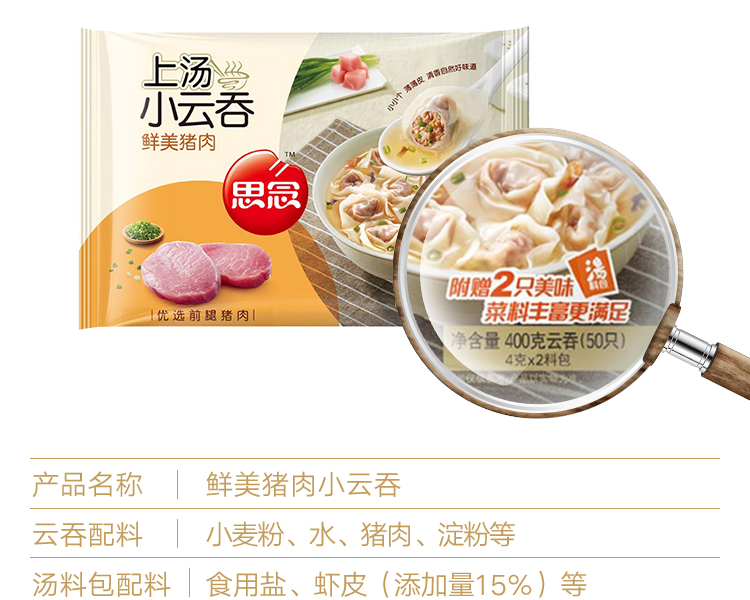 思念 上汤小云吞 鲜美猪肉 400g 50只 夜宵