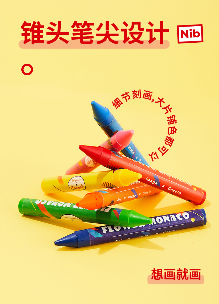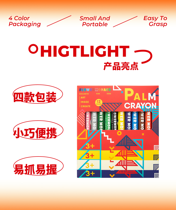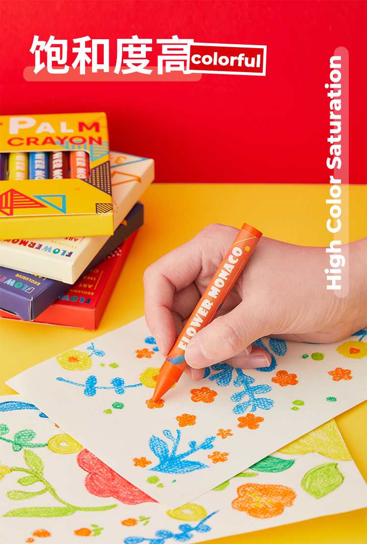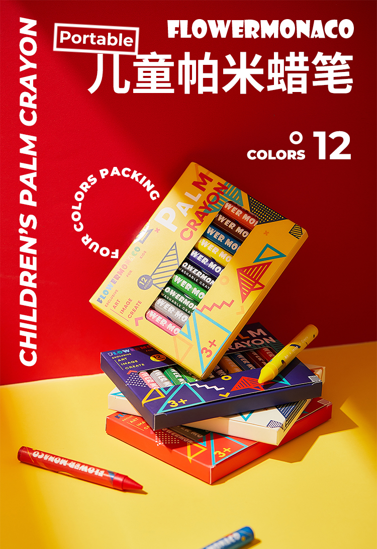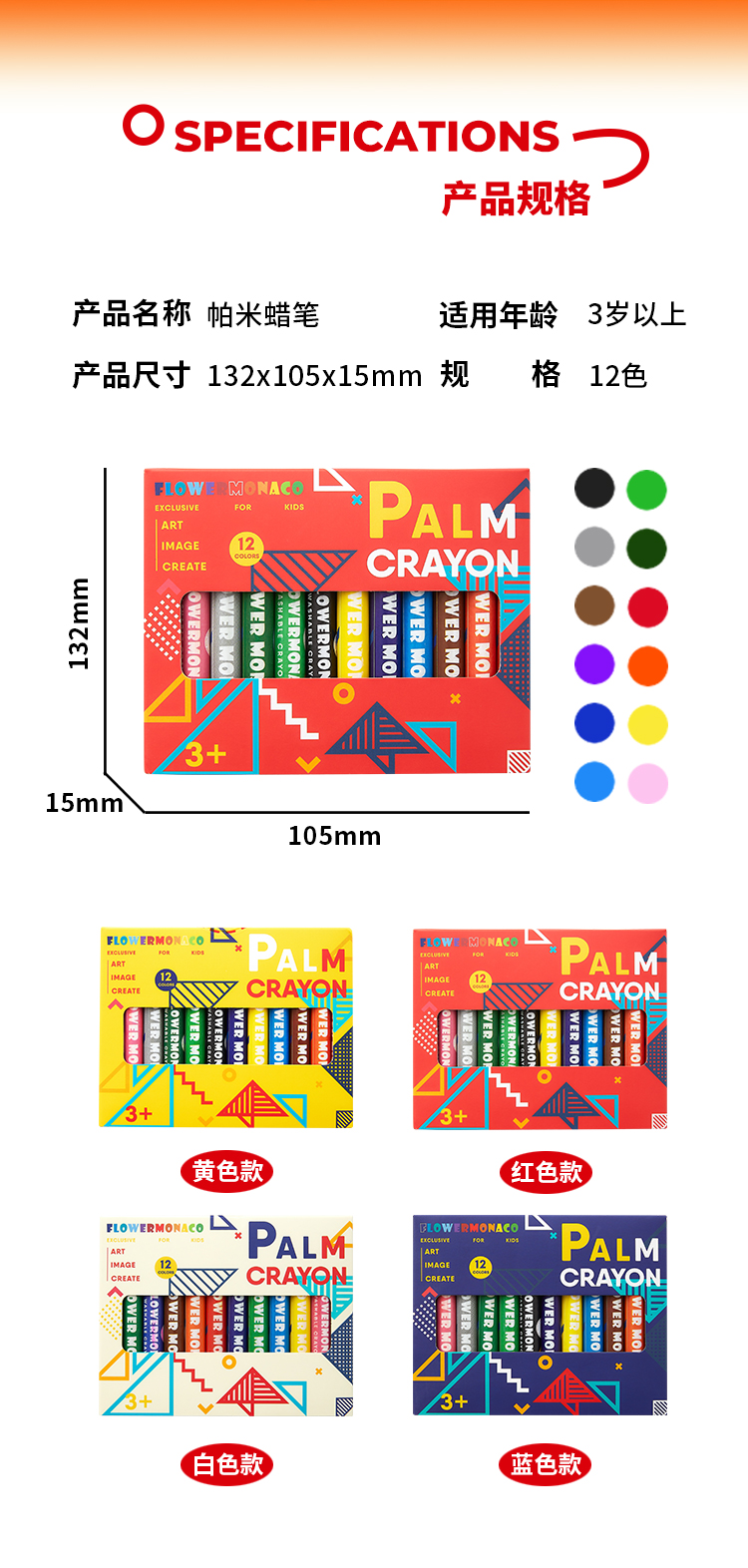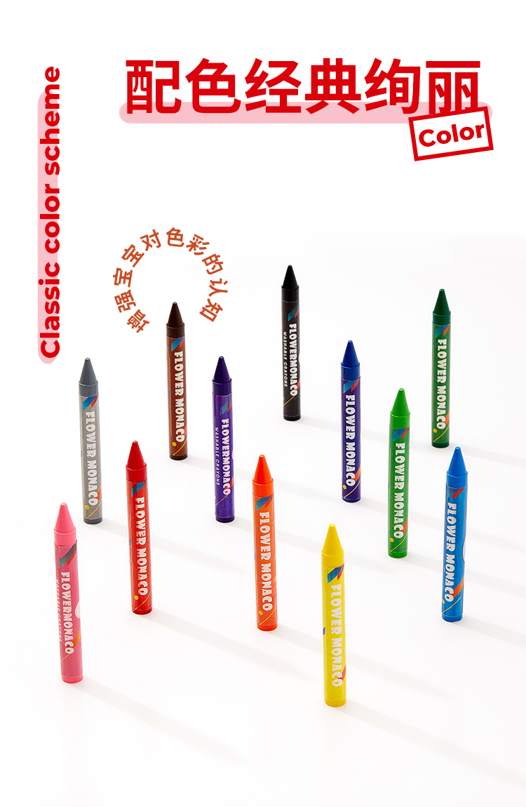 花芽FlowerMonaco 帕米蜡笔12色/盒(白色、红色、黄色、蓝色) 不脏手无毒儿童绘画涂鸦安全无毒彩笔