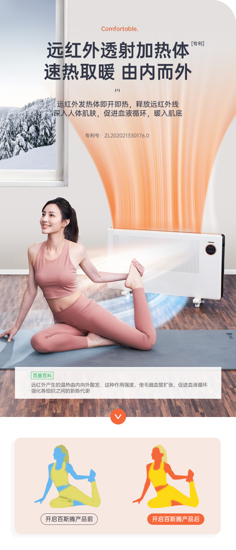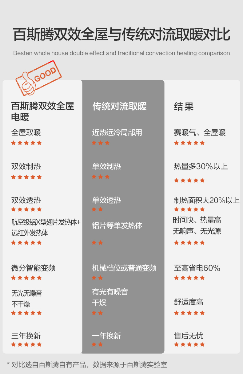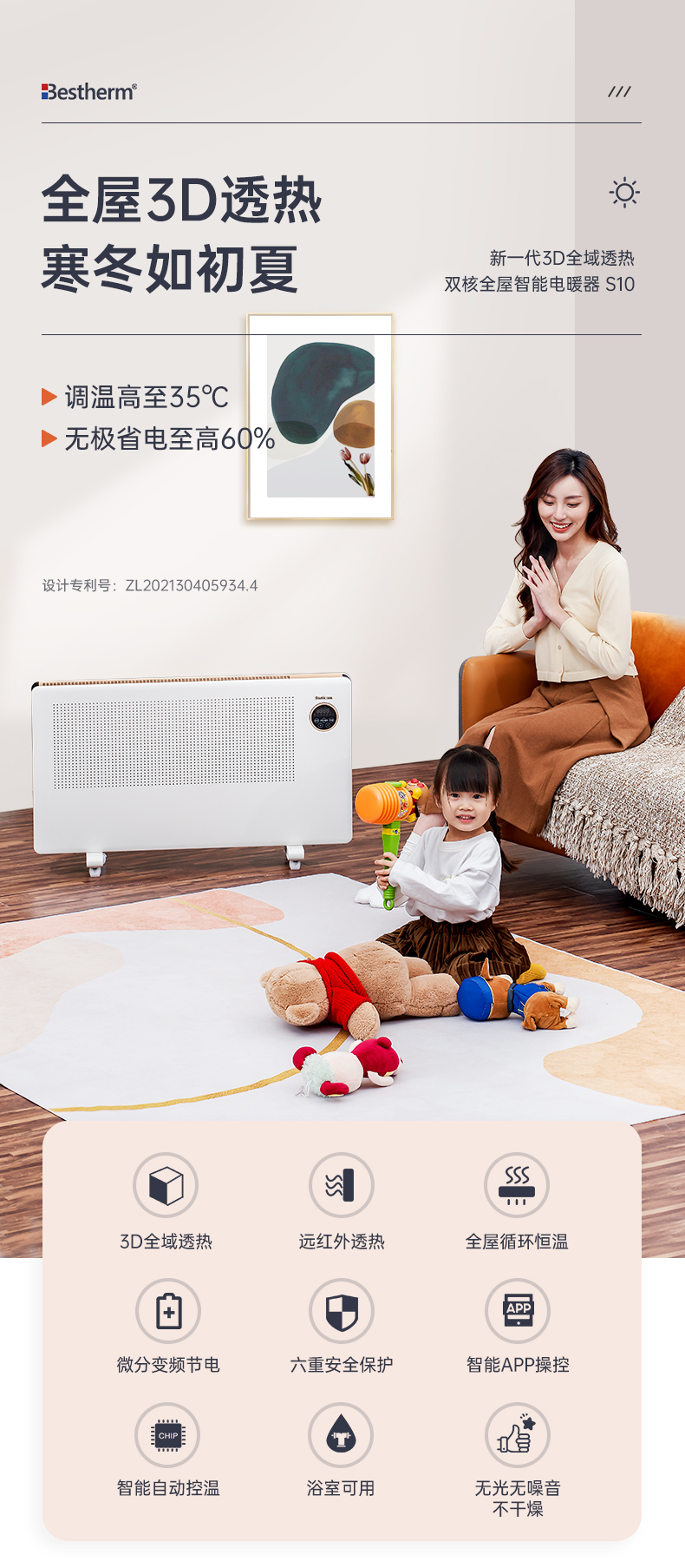 Bestherm百斯腾对流透射式全屋取暖器家用智能静音电暖气2021新款