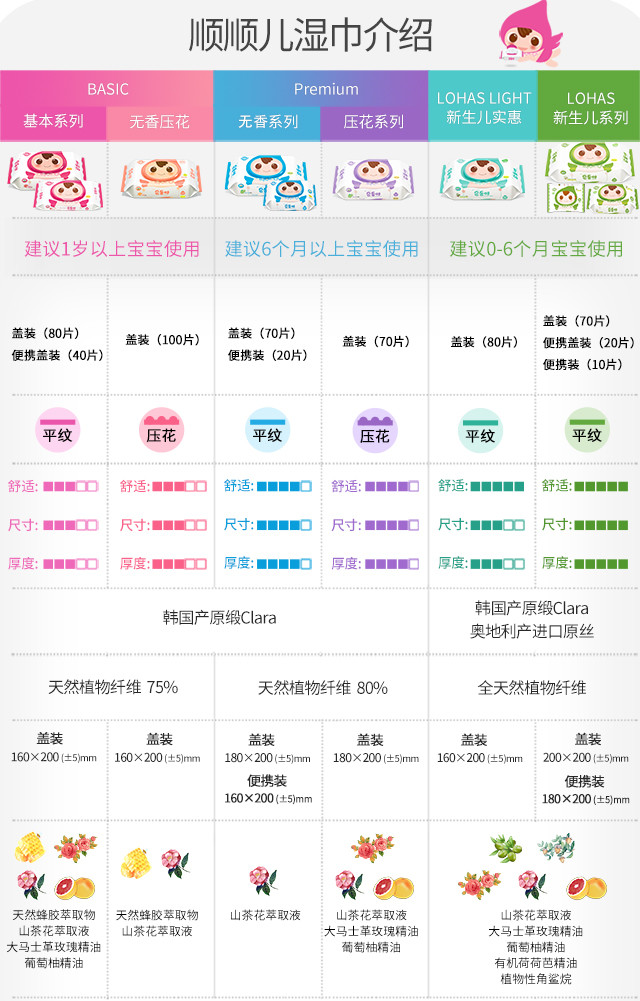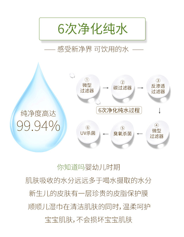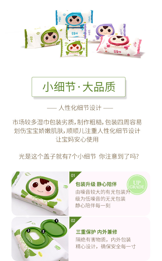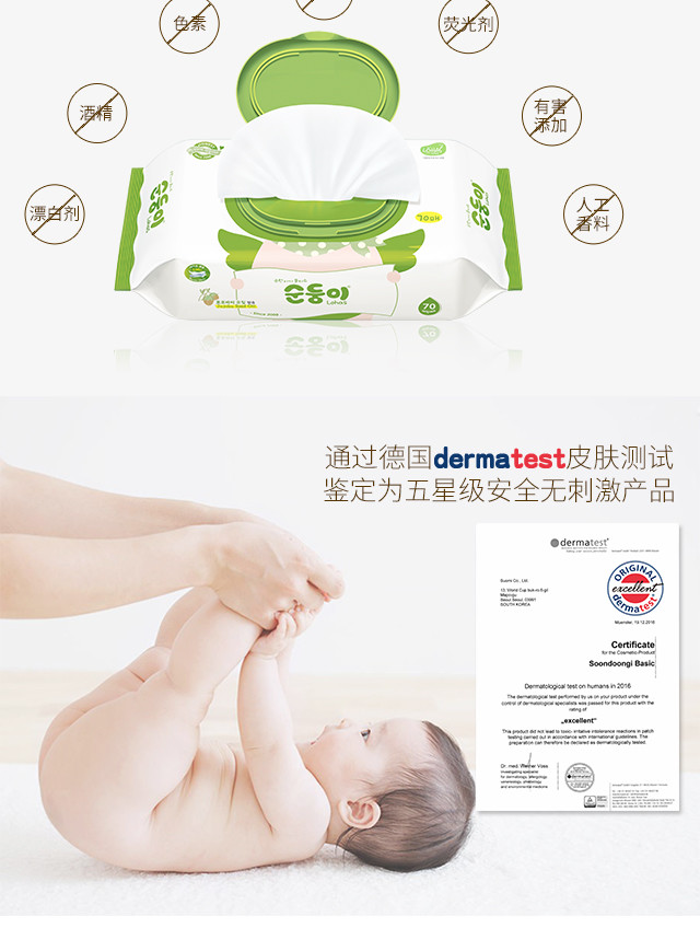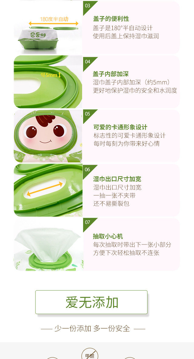 顺顺儿韩国原装进口婴儿湿巾绿色70抽10包