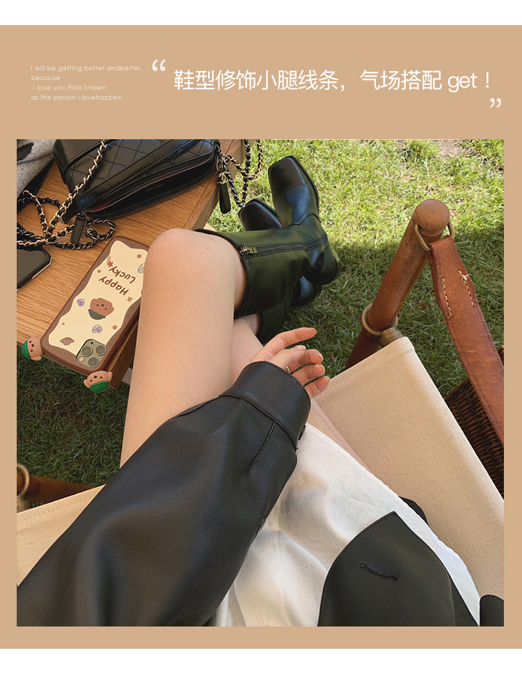 金蘑菇菇【战靴来了!!】时髦方头,鞋型修饰小腿线条,气场搭配