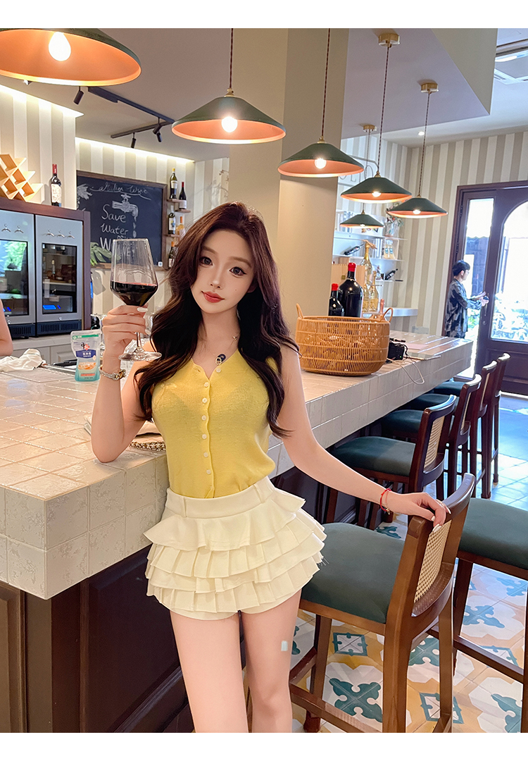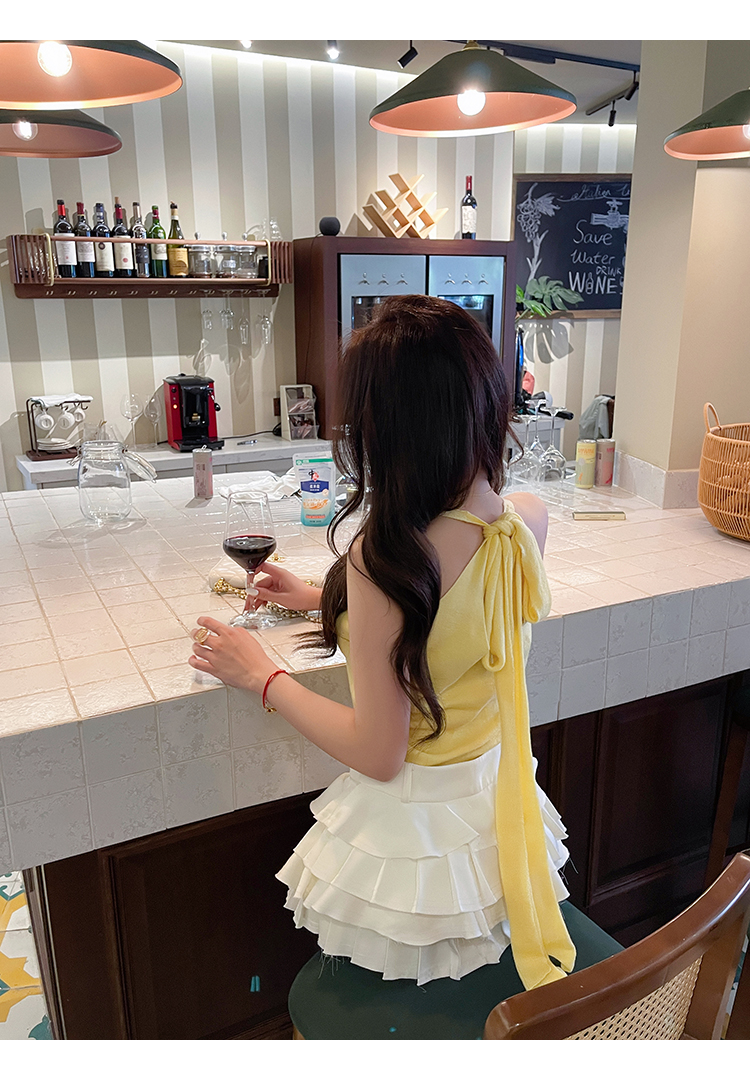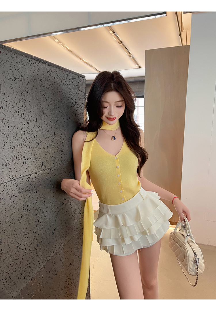 清仓捡漏 LINCHAOZHANG【小鸡黄】针织背心+飘带 蛋糕半裙LH240053 LQ240289