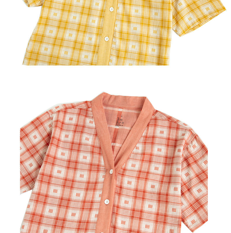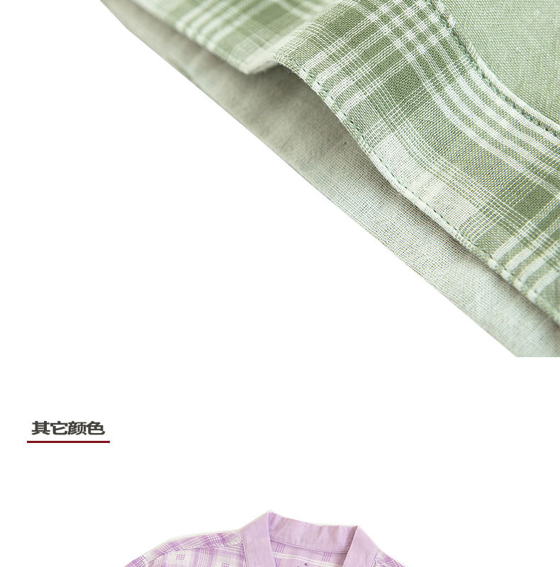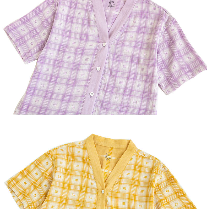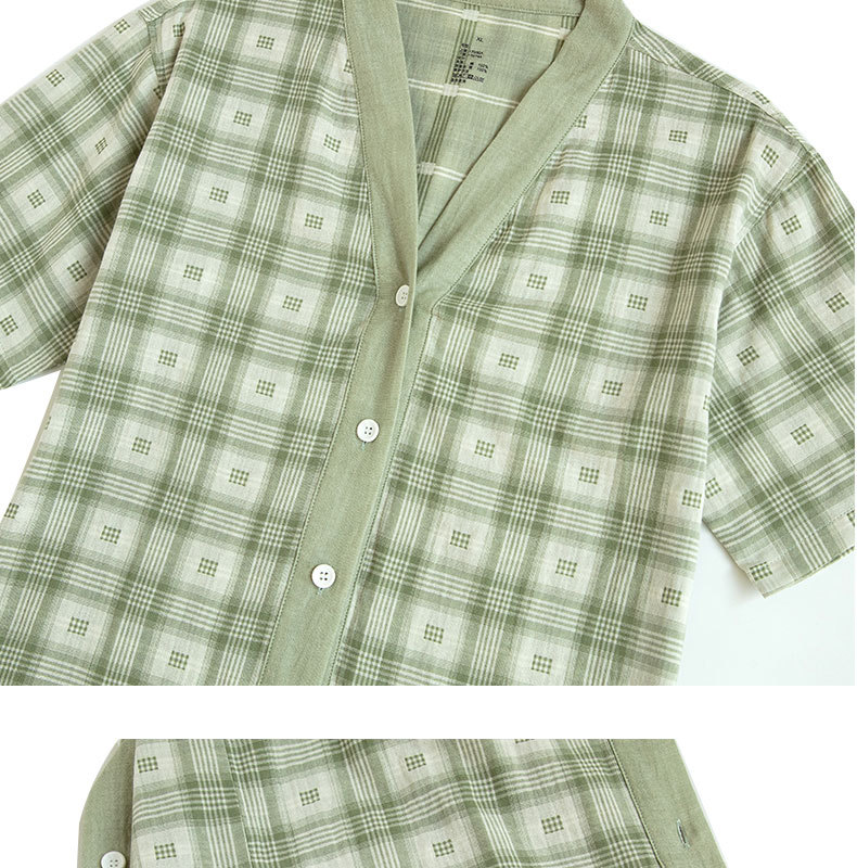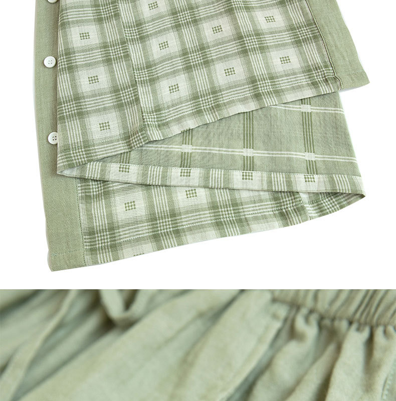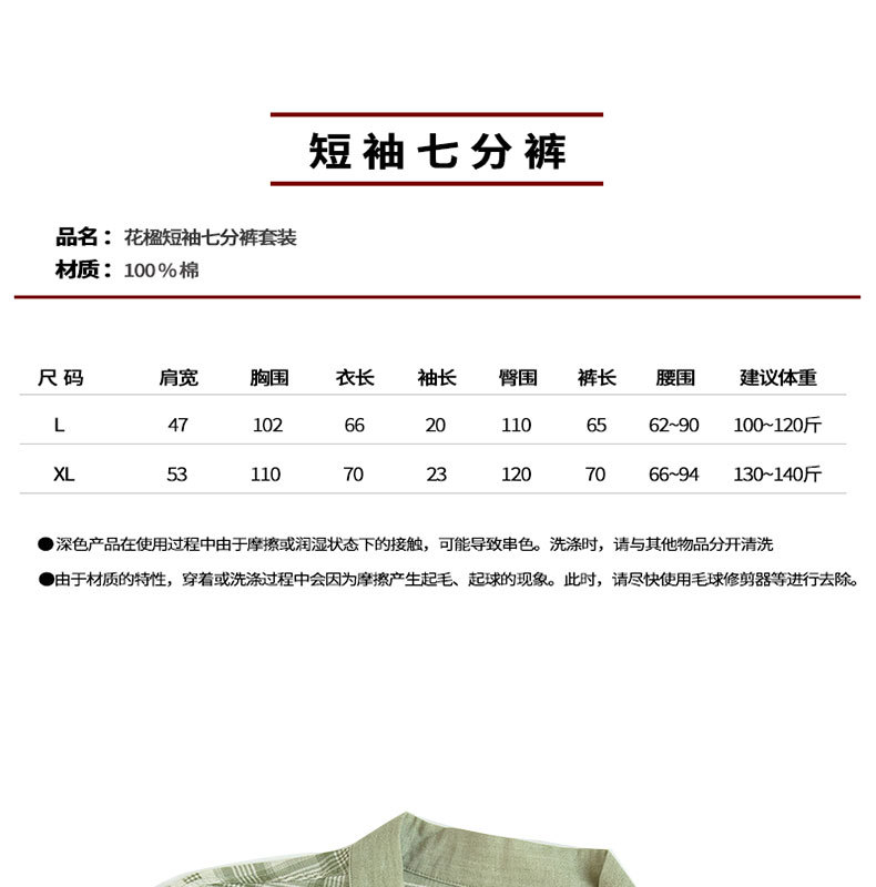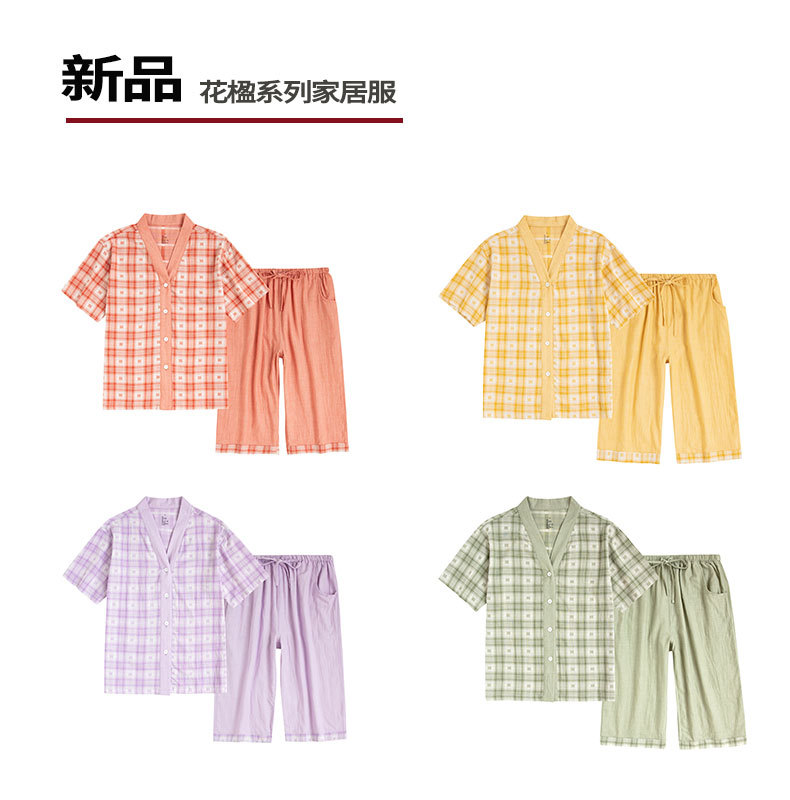 纯棉短袖家居服女春夏薄款双层纱格子过膝七分裤睡衣套装