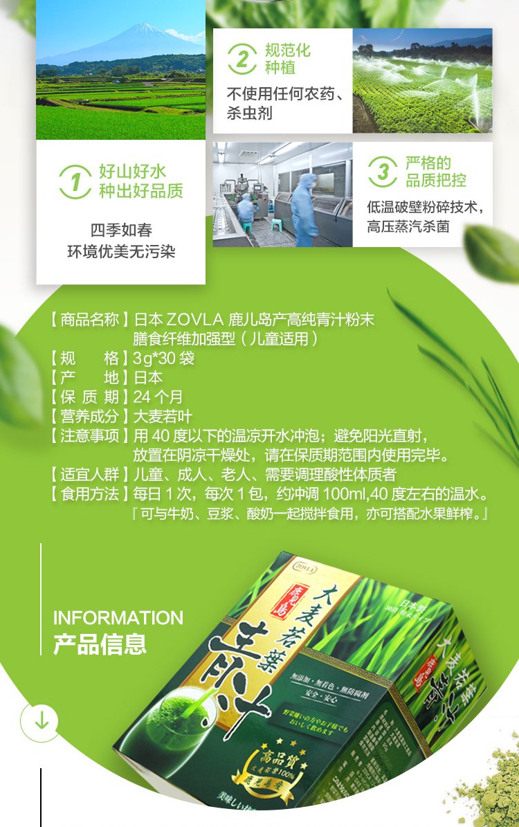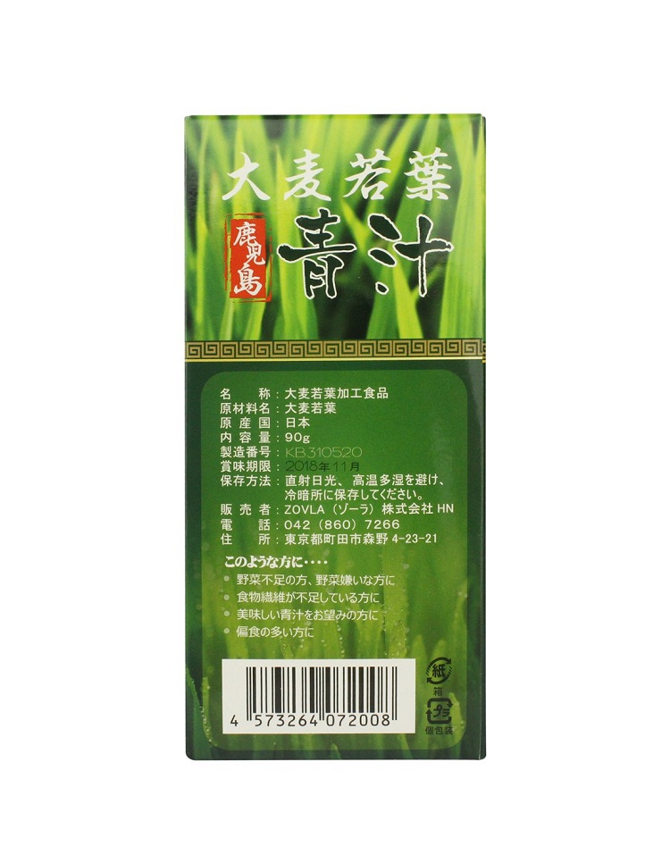 【香港直邮】日本ZOVLA鹿儿岛大麦若叶青汁90g/盒 推荐!