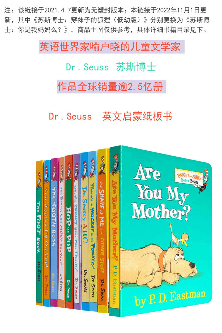 【中商原版】苏斯博士 低龄10册纸板书 廖彩杏推荐书单 英文原版 Dr.Seuss's ABC 苏斯博士的ABC 英文启蒙纸板书 儿童绘本故事