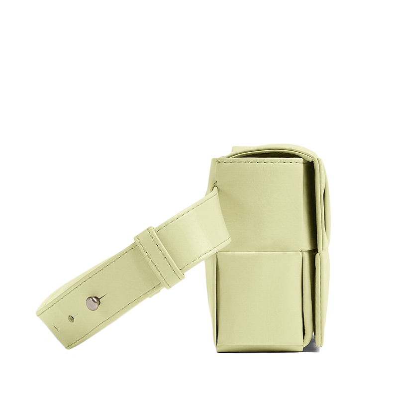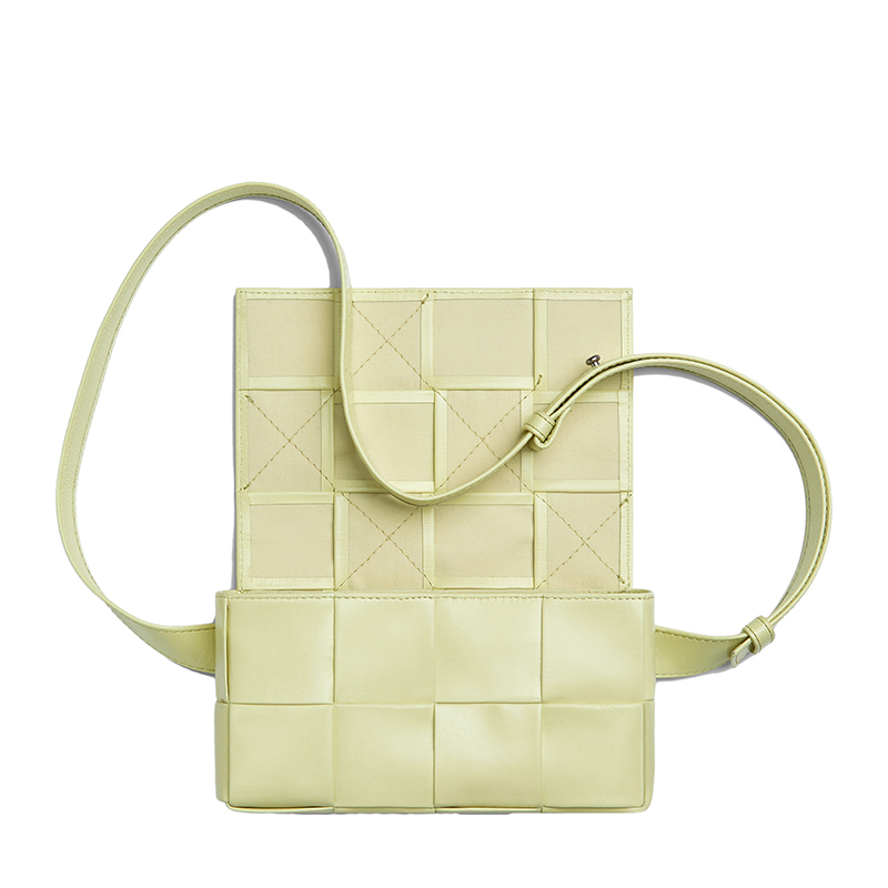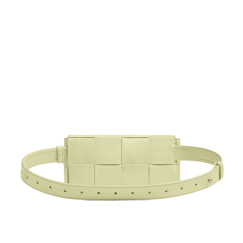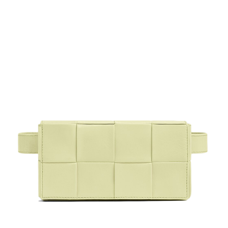 【包税】Bottega Veneta/葆蝶家 22新款CASSETTE系列 男士迷你水洗柠檬黄色Intreccio编织小牛皮斜挎包腰包651053VCQ729413
