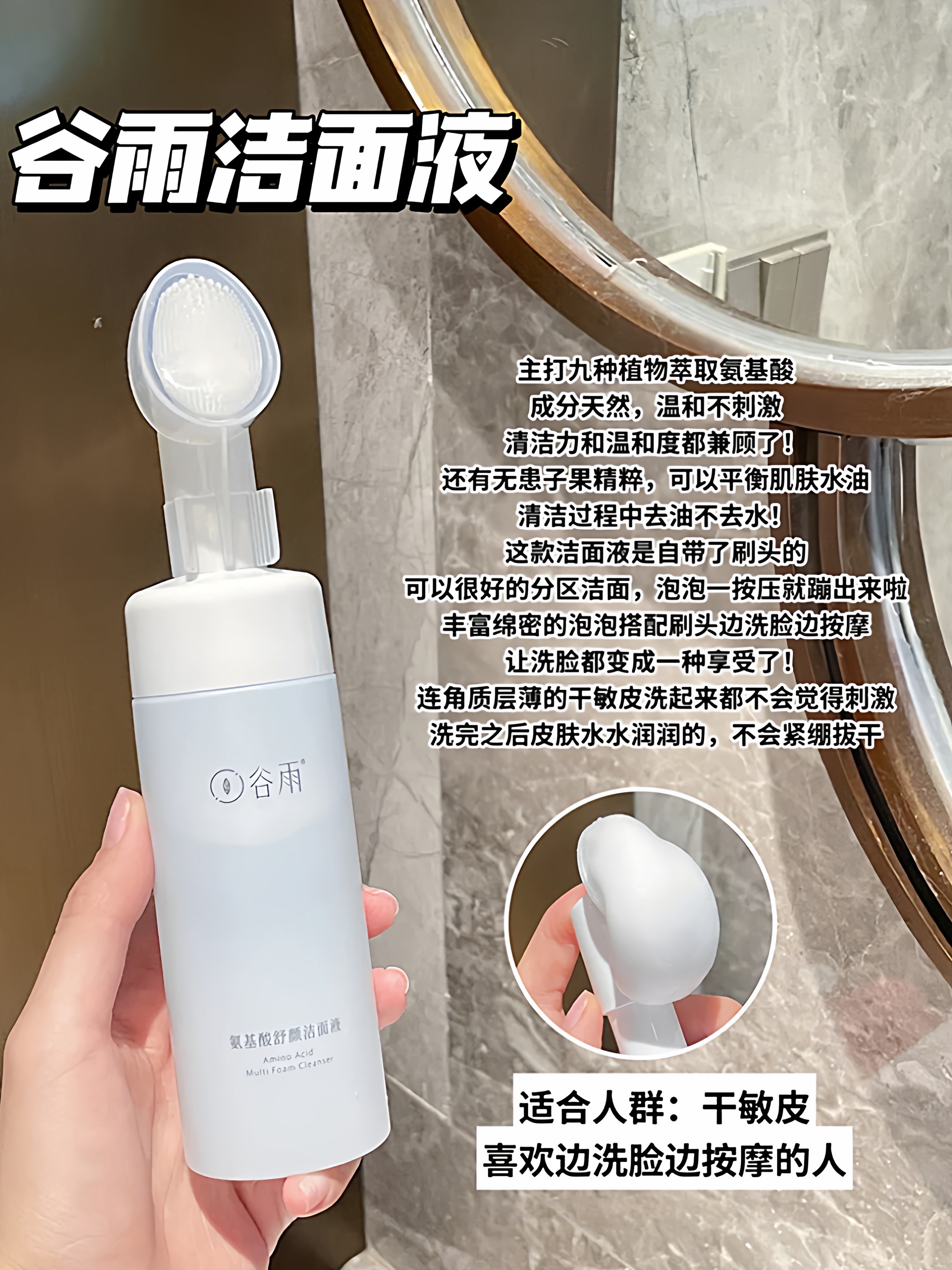 谷雨氨基酸洗面奶150ML 刷头控油洁面乳深层清洁毛孔保湿去黑头