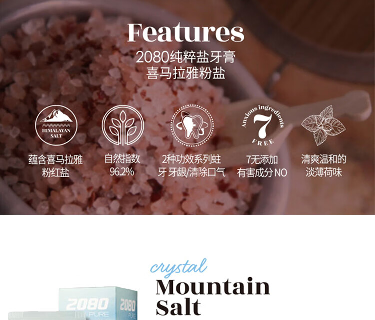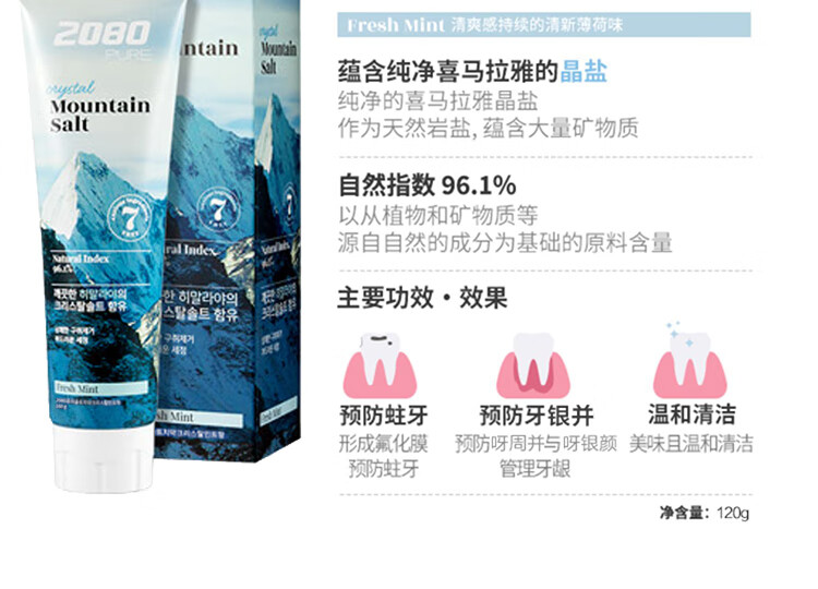 韩国爱敬2080喜马拉雅清新口气粉盐/晶盐牙膏125g 芳香口气亮白牙齿 117888/110360