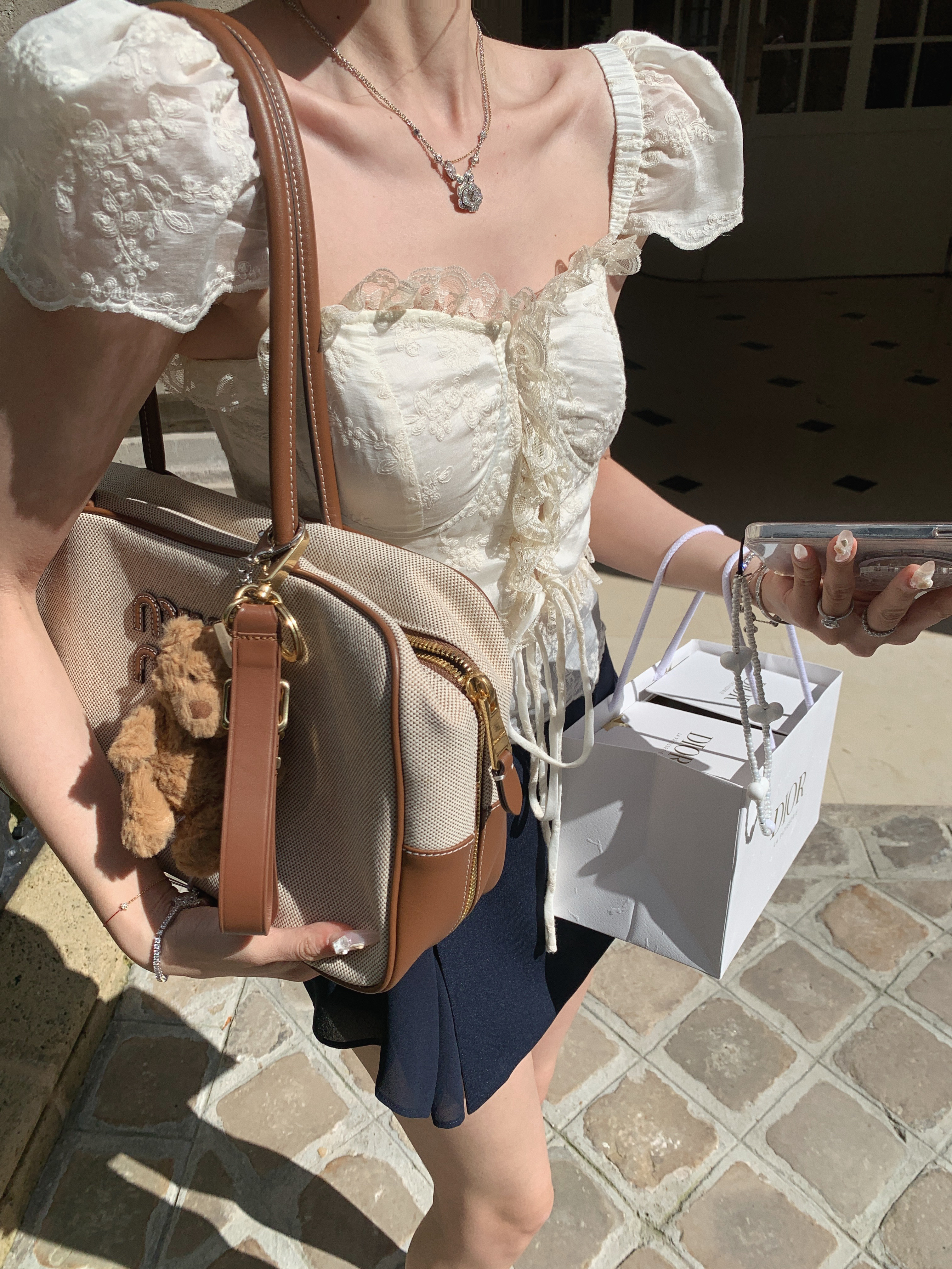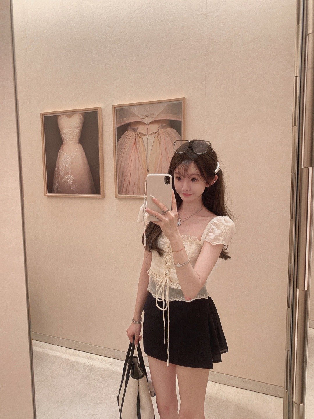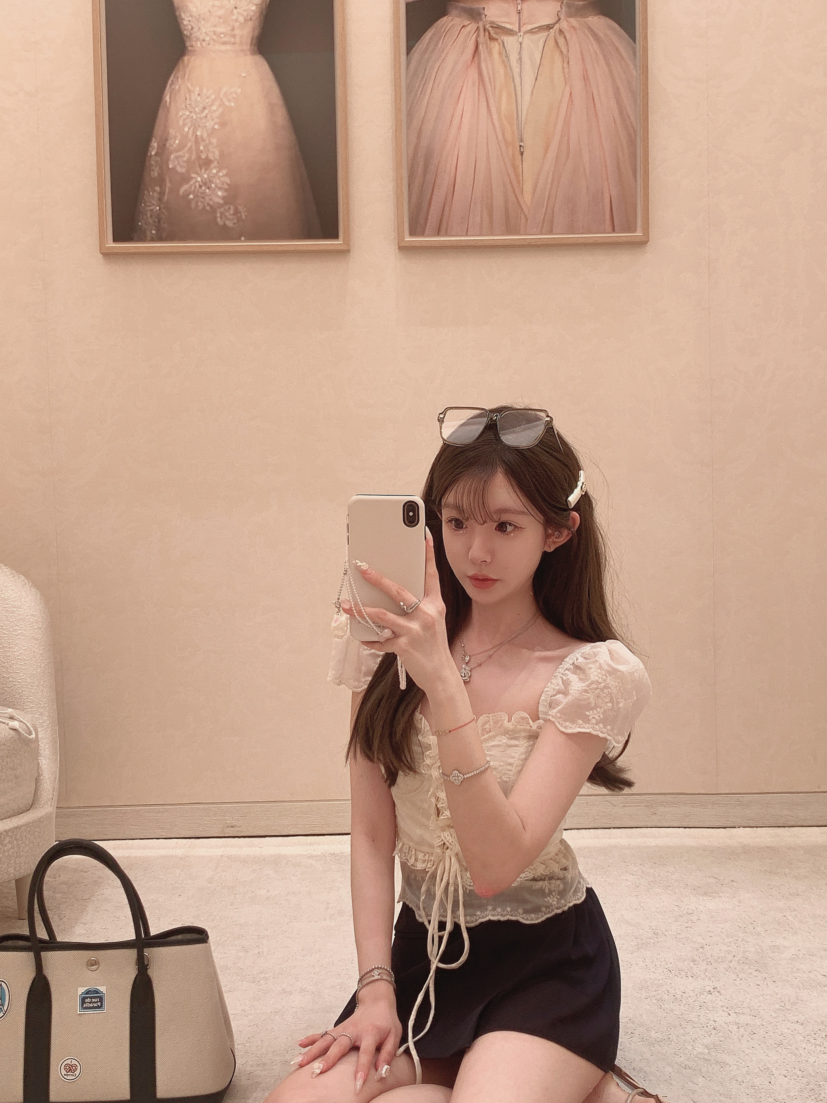 金蘑菇菇 Atelier奥赛博物馆 花样蕾丝套组/甜美精致泡泡袖短上衣