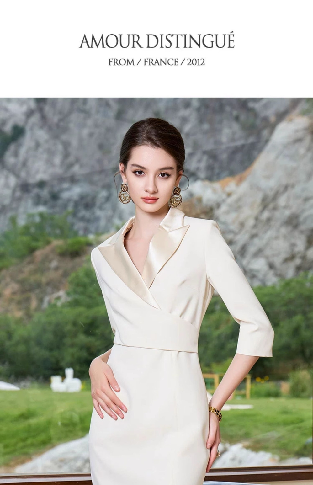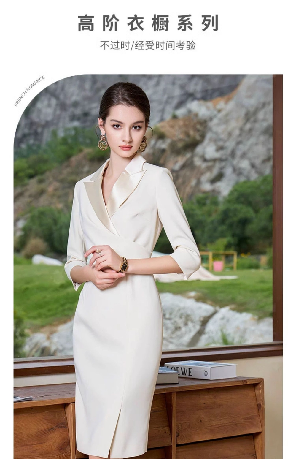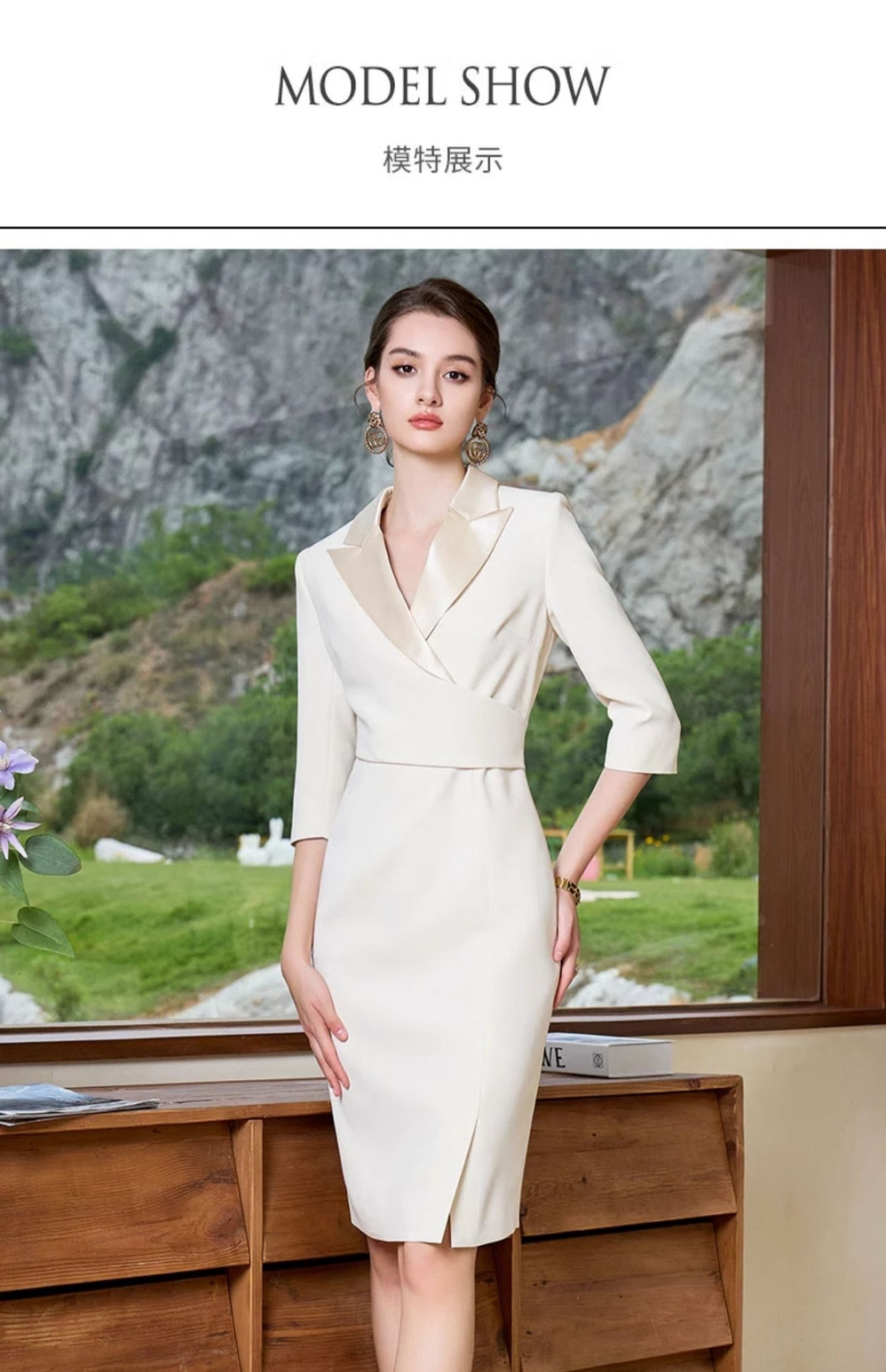 IWY/气质香槟色西装领连衣裙女修身上镜主持礼服裙美容院Q966
