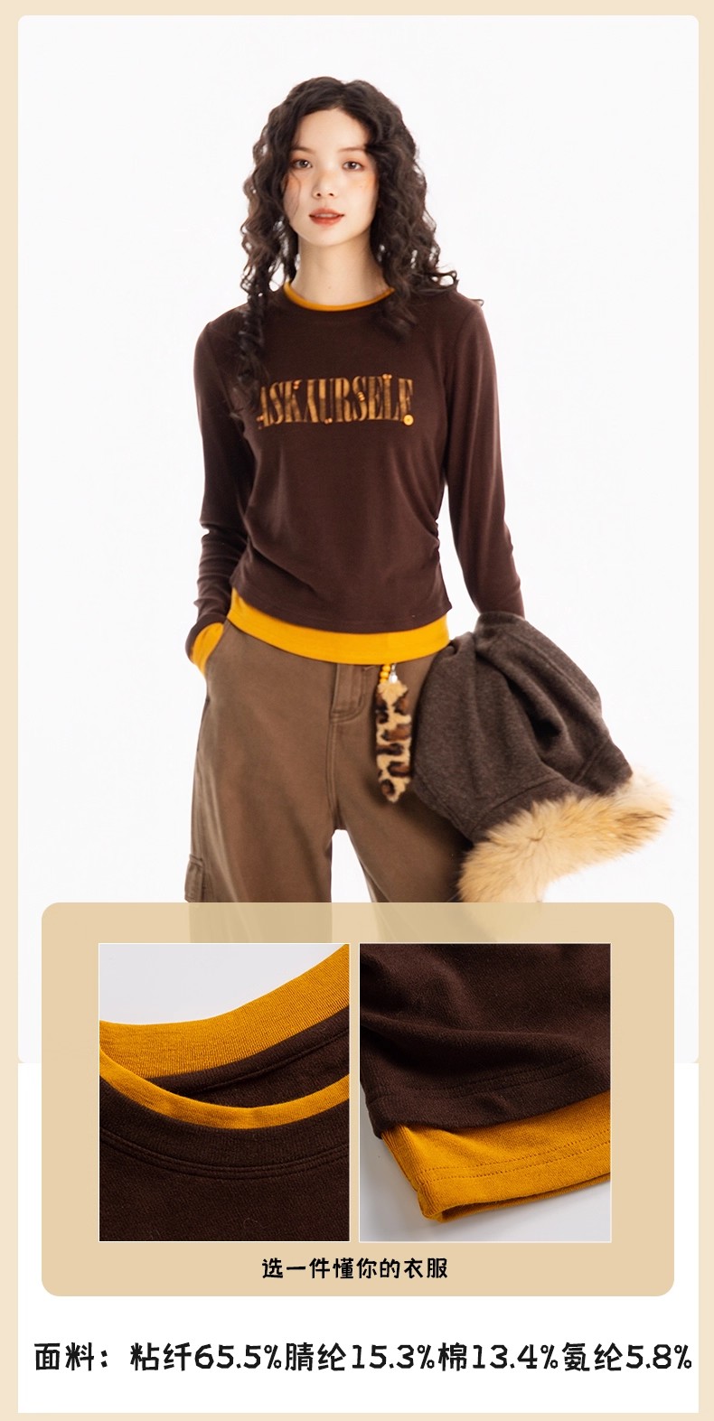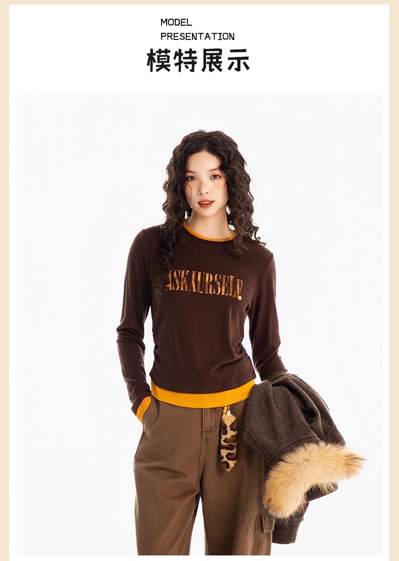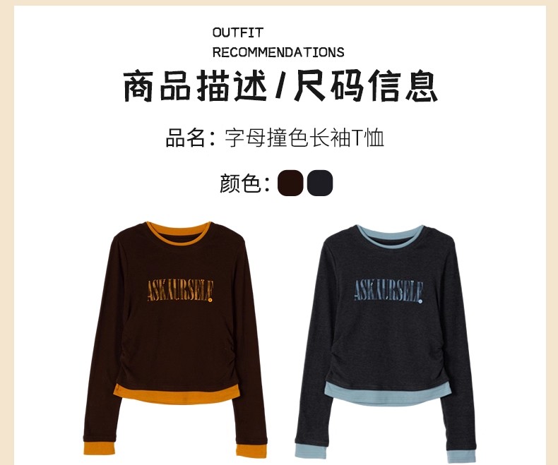 【门店同款】ENJOY冬季“游牧漫寻”字母撞色长袖T恤 167450222