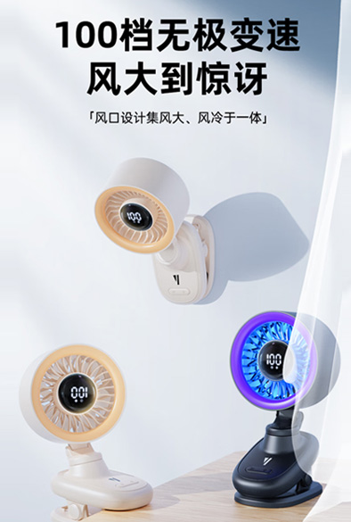 【1件包邮】映趣 夹子循环风扇005米色 100档无极变速,风力一档更比一档强甘肃/青海/内蒙古/新疆/西藏/宁夏/海南/港澳台不发货