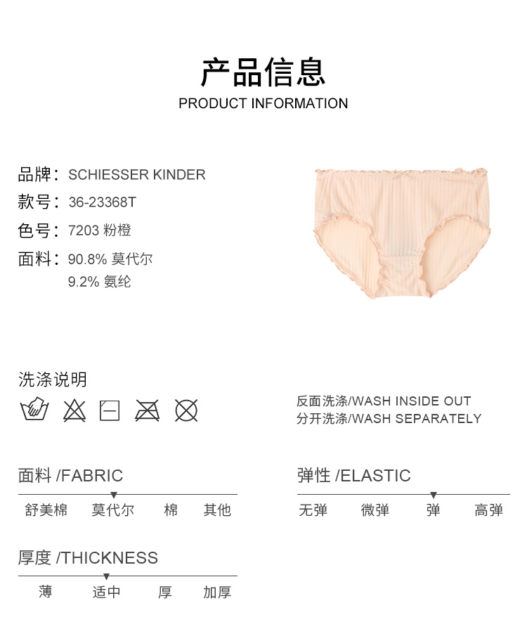 SCHIESSER德国舒雅童装女童莫代尔花边三角裤(单条装)36/23368T