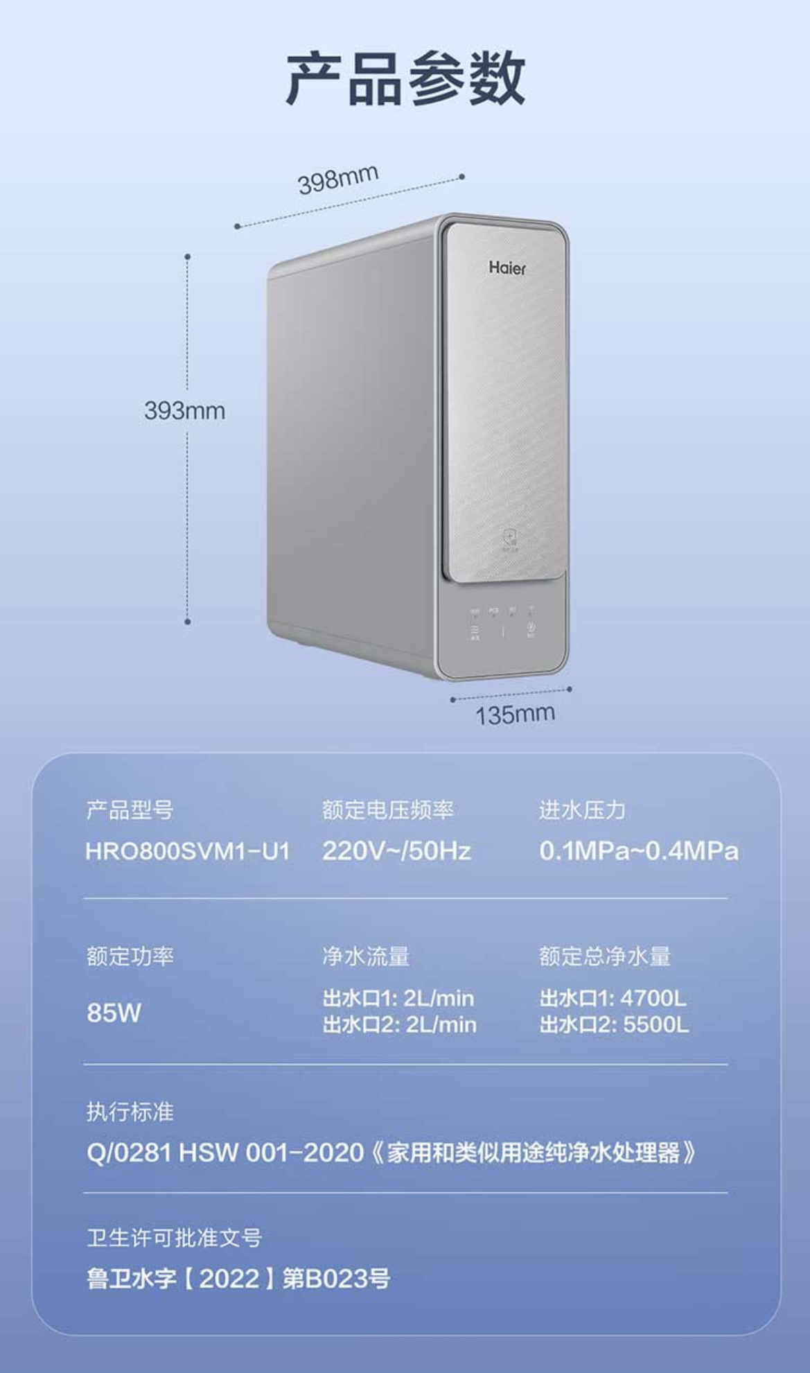 海尔(Haier)净水器HRO800SVM1-U1