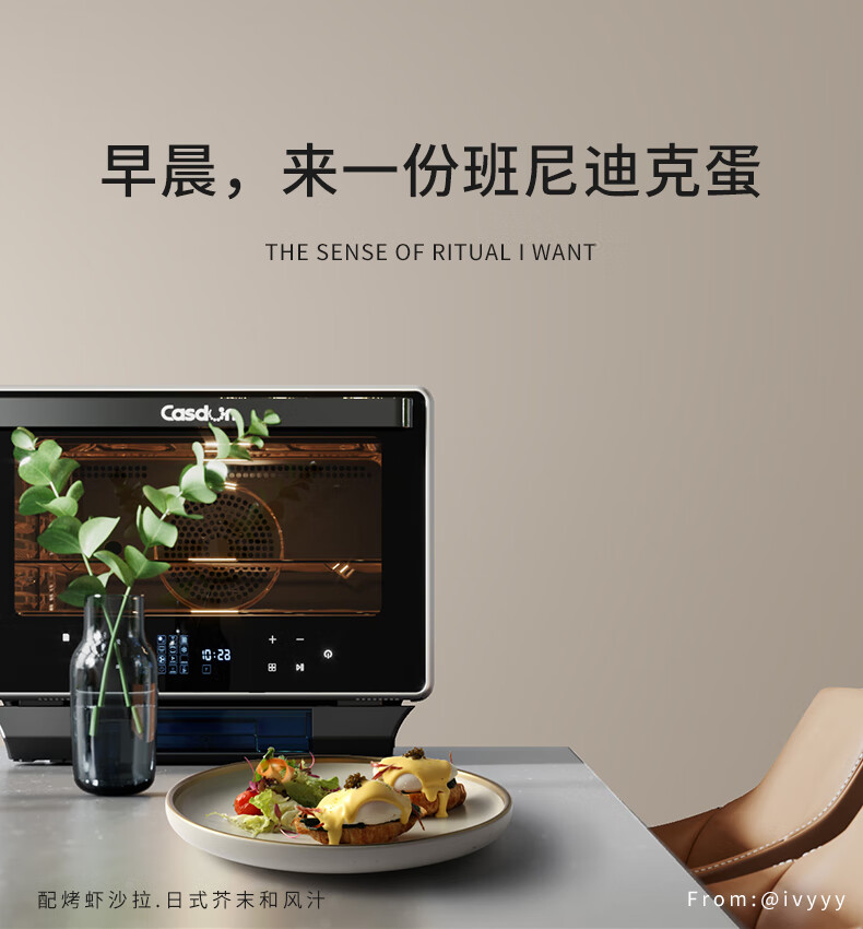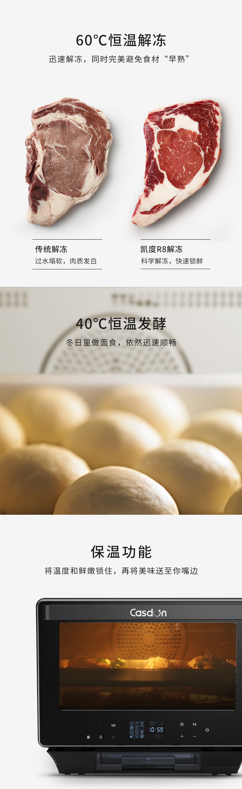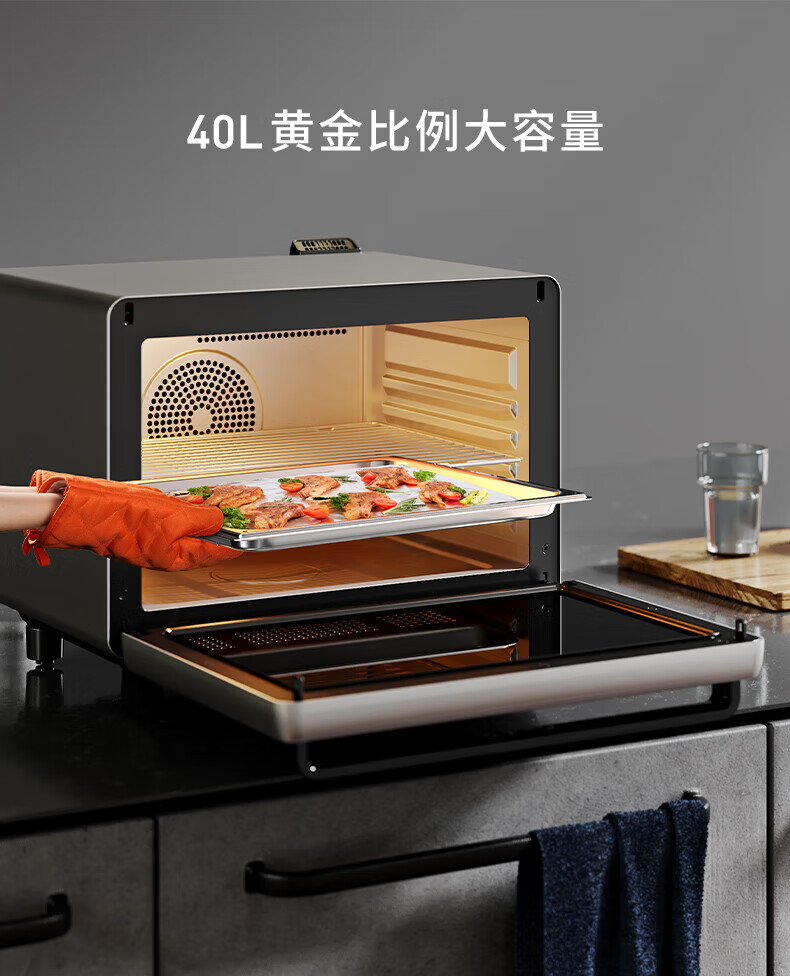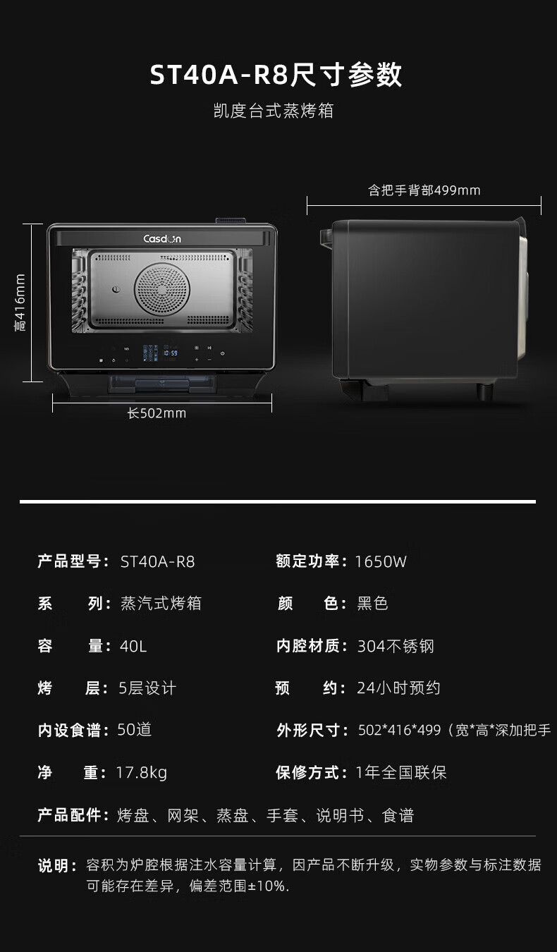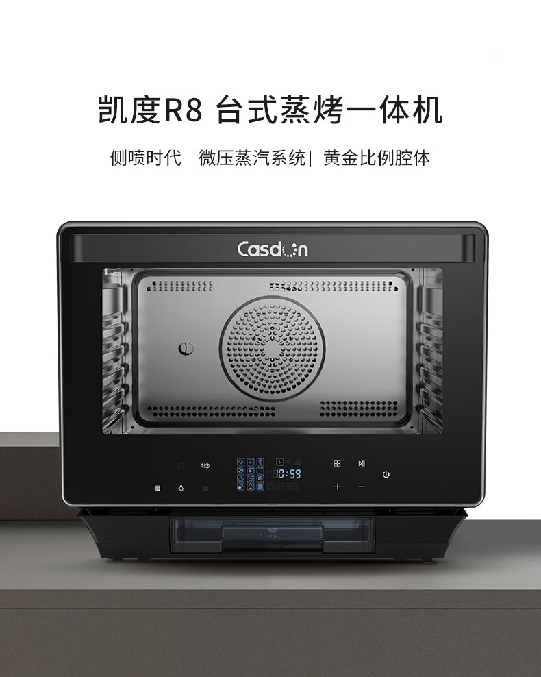 凯度(CASDON)台式蒸烤箱40L大容量 电烤箱 电蒸箱 微波炉家用台式蒸烤箱 微蒸烤 蒸烤一体机多容量升数选择 R8台式蒸烤箱+旋转烤叉