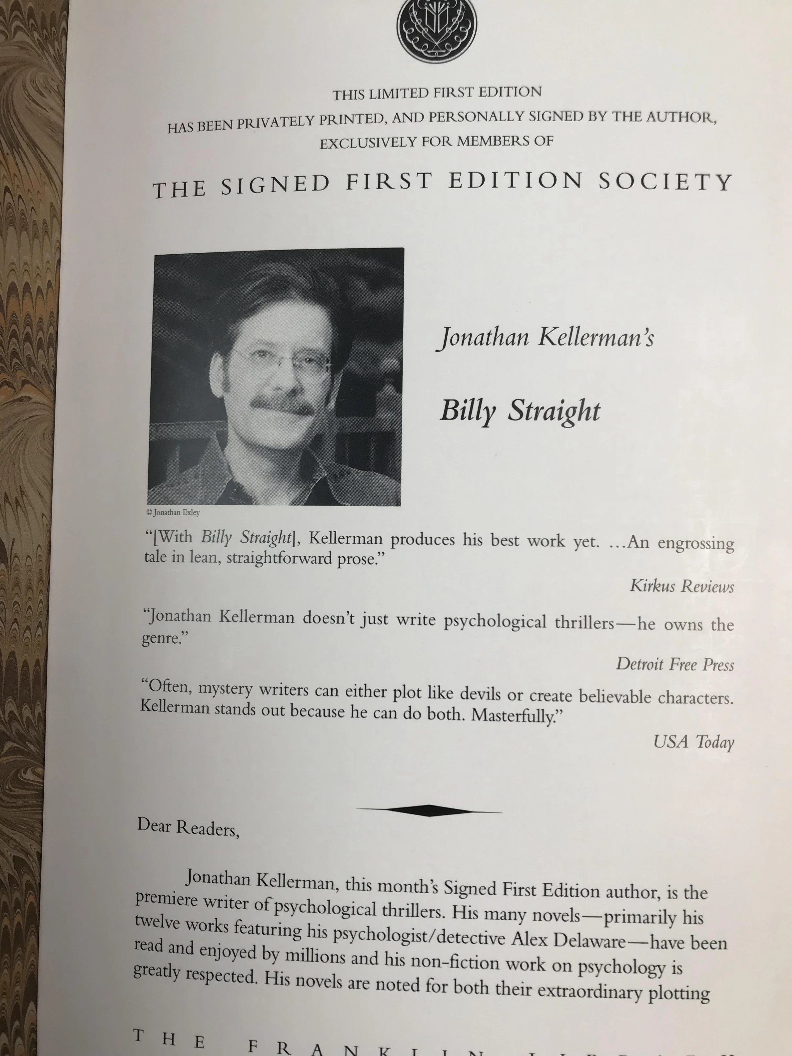 签名首版!乔纳森・凯勒曼《比利・斯特赖特》 配插图 富兰克林图书馆豪华皮装本
