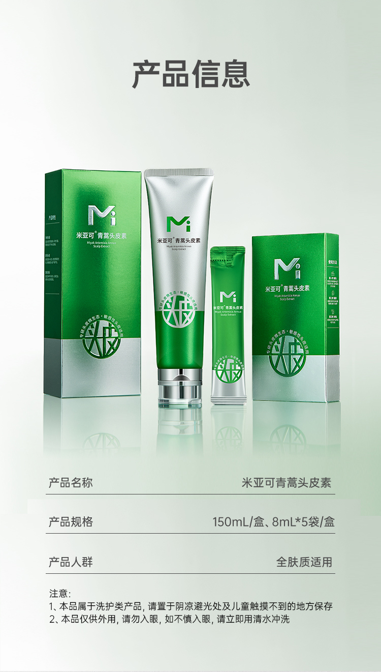 ⁵清69元2瓶【米亚可青蒿头皮素】头皮素同厂容量大一倍,头皮长痘 头皮屑 150ml/支 YY05-QTT-YLJZ