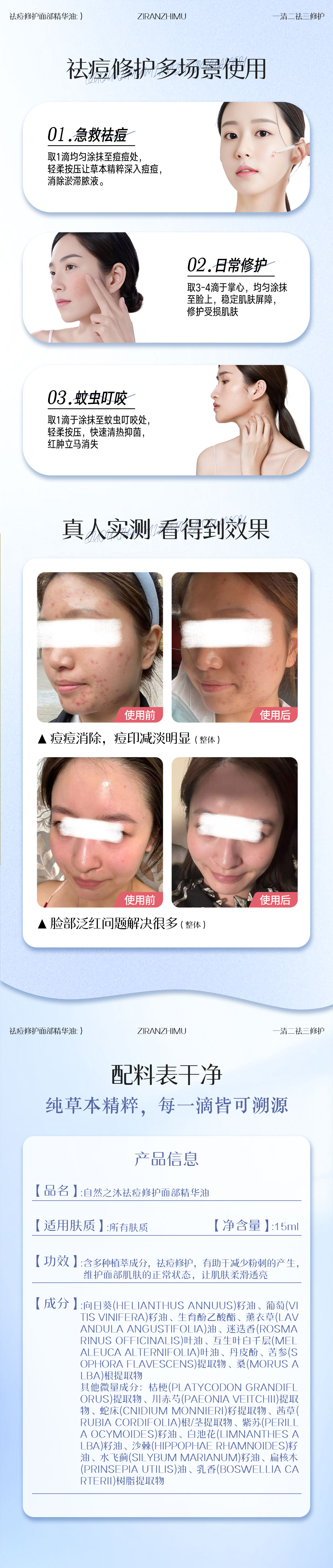 【节后发货】祛痘修护面部精华油 15ml (使用前建议耳后、 颧骨测试 没有问题再全脸使用 )(自营品)
