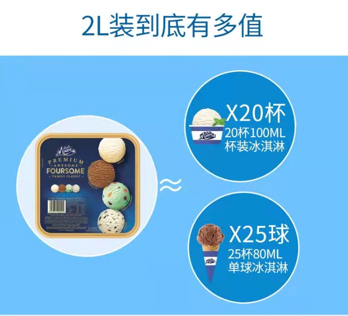 2L盲盒可以装25球, 1L奶砖至少也可以装12球 一份玛琪摩尔专属你的幸运盲盒套餐可以装出至少37球冰淇淋 还加送一个挖球勺,不需要出门购买,直接送货到家 超值有没有!!