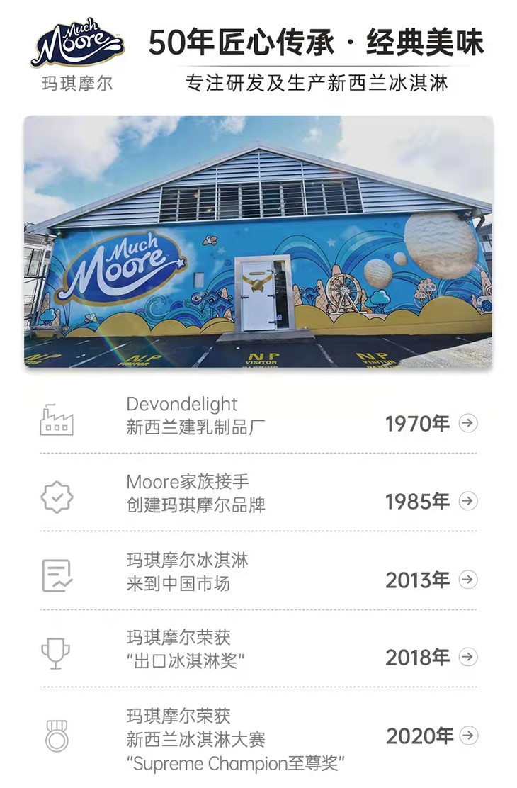 MuchMoore(玛琪摩尔)是新西兰专业冰淇淋制造商之一。公司拥有强大的研发团队和生产队伍、现代化生产设备、全自动化的无菌车间可以保证产品始终如一的高品质和口感。从选材到生产、都是严格把关。