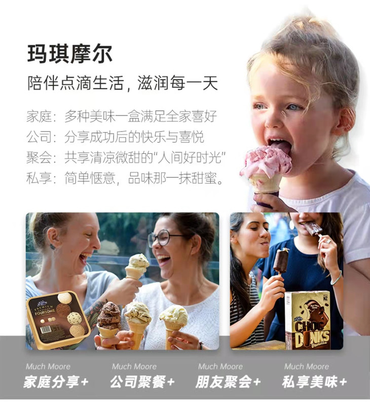 经过几十年的发展,Much Moore已经成为新西兰冰淇淋最受欢迎的本土品牌之一。