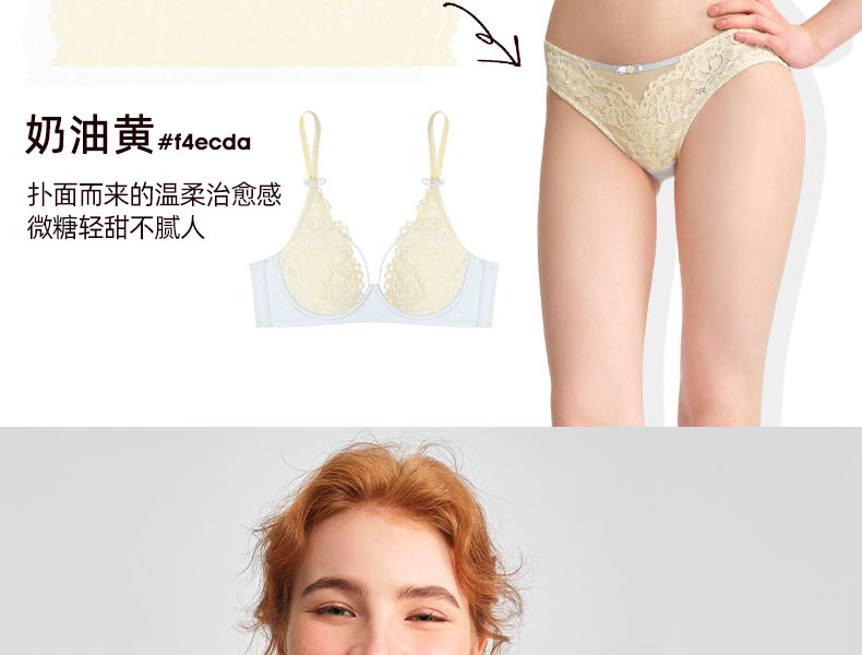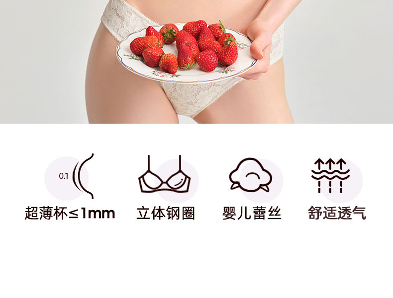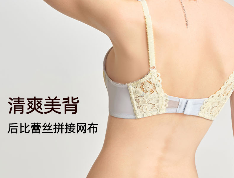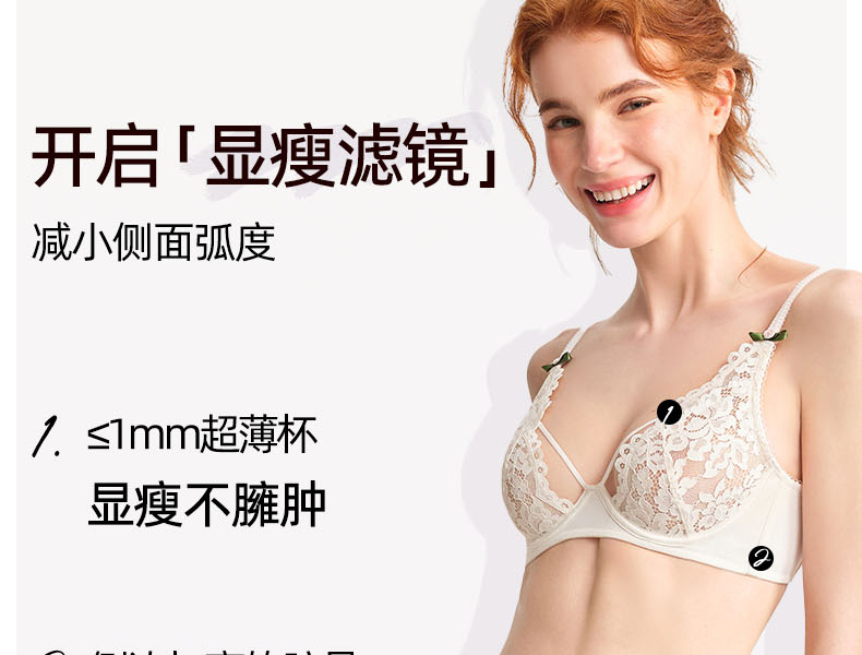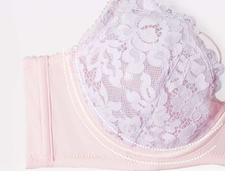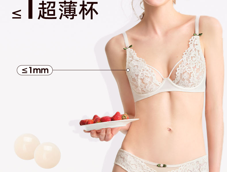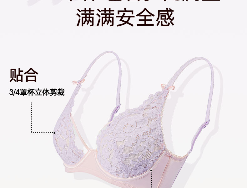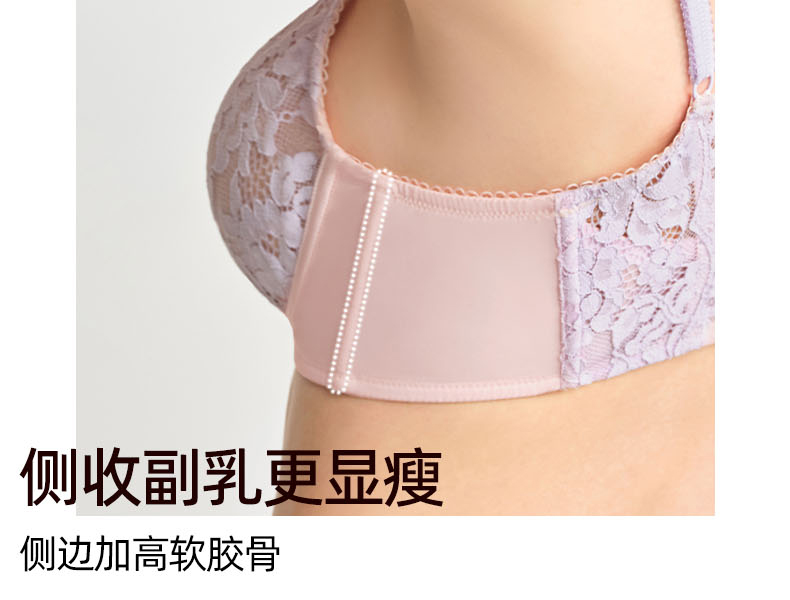 好奇蜜斯无痕蕾丝内衣女小胸聚拢无钢圈文胸罩套装26夏薄防下垂白-米奥