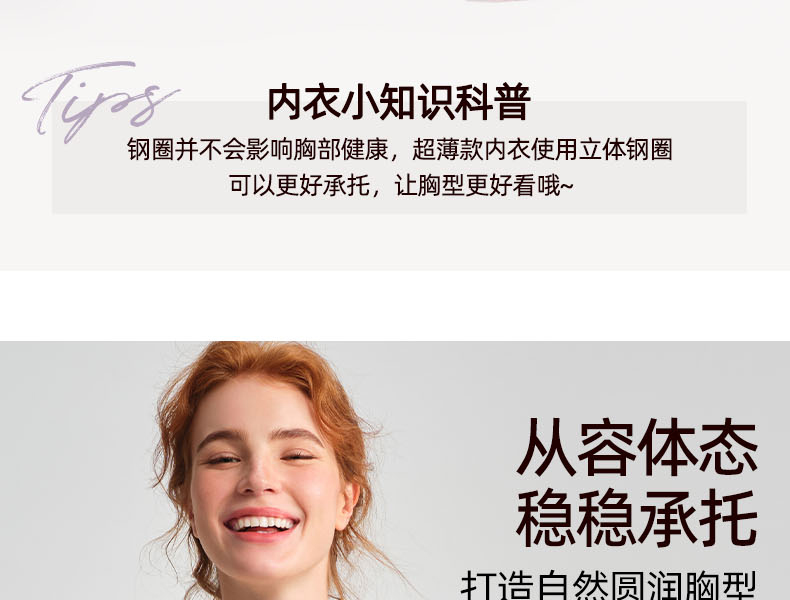 好奇蜜斯性感大胸显小夏季超薄花卉蕾丝内衣女上托调整型文胸套装卡琪
