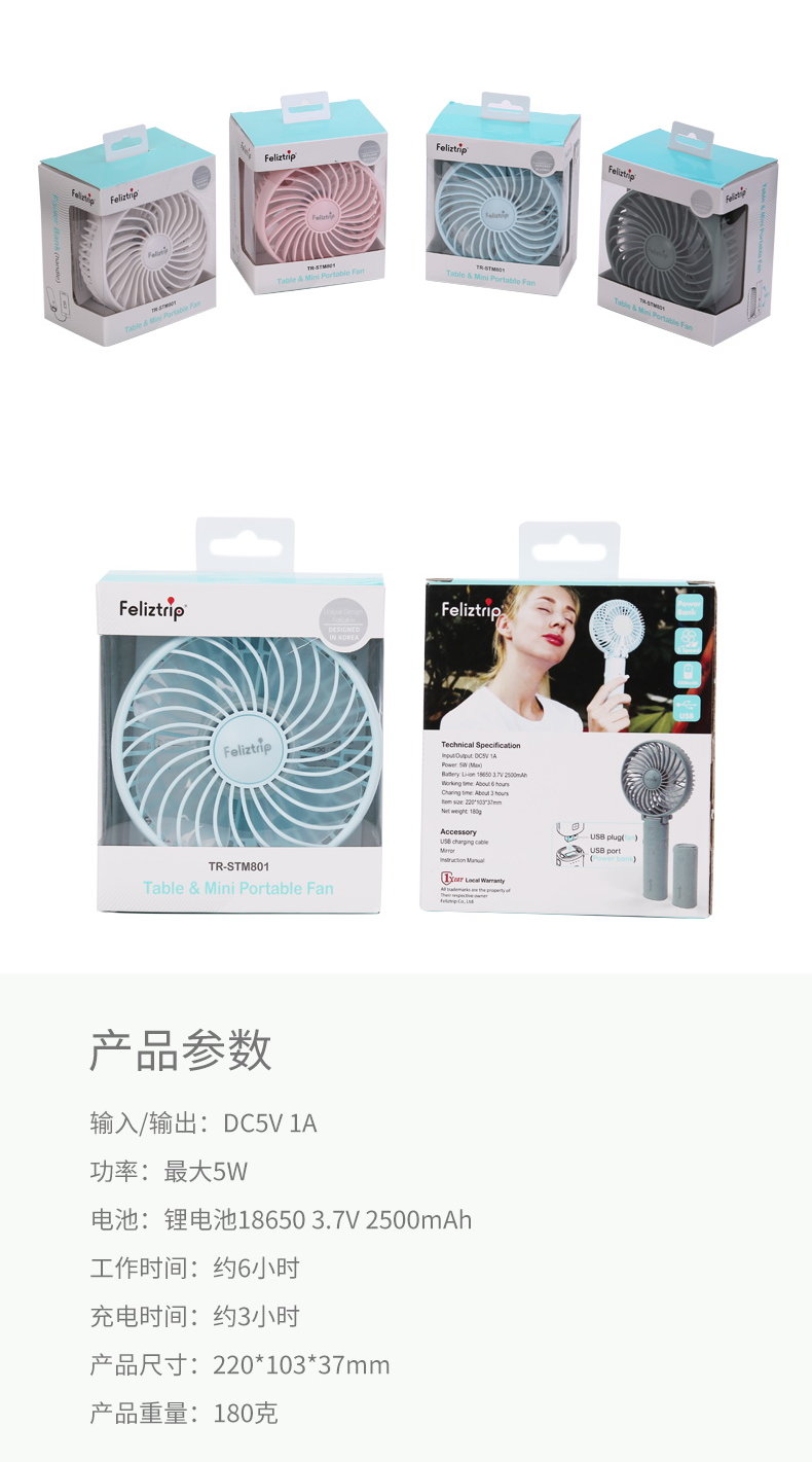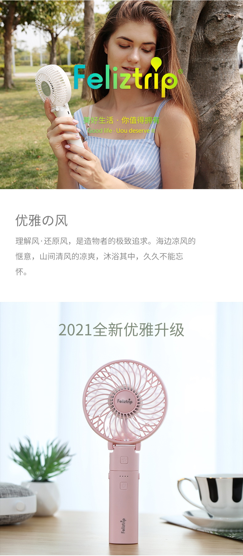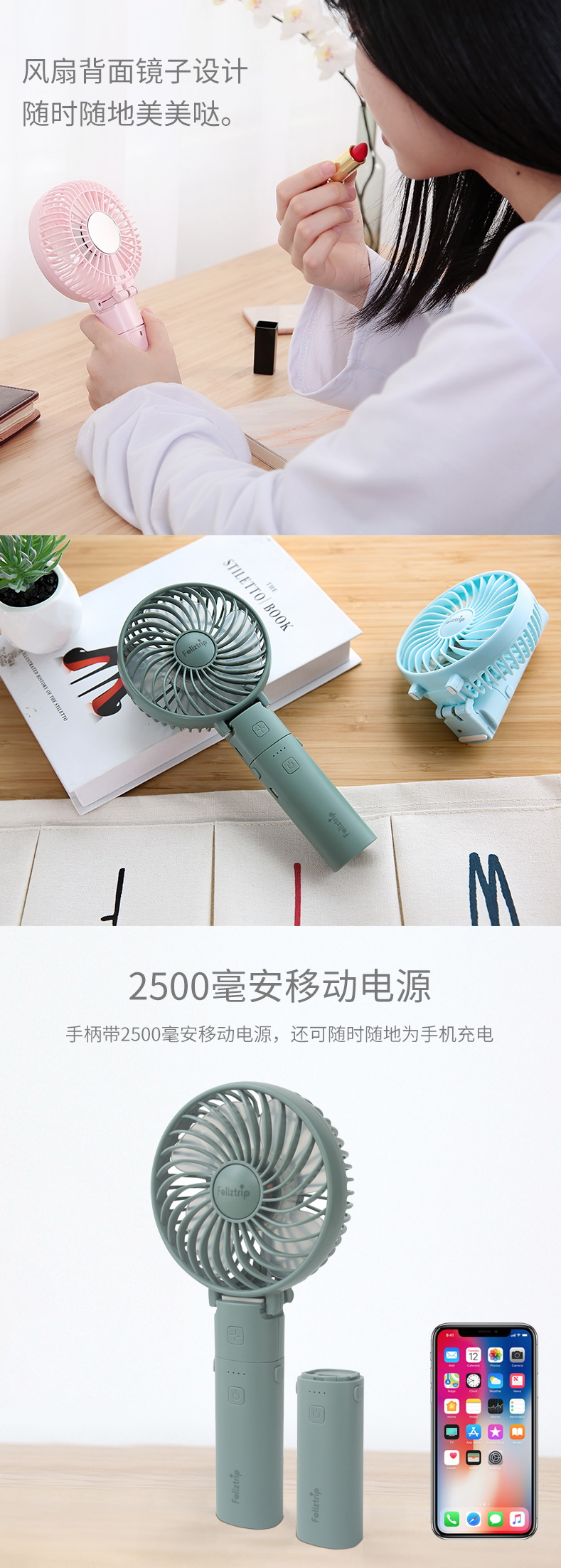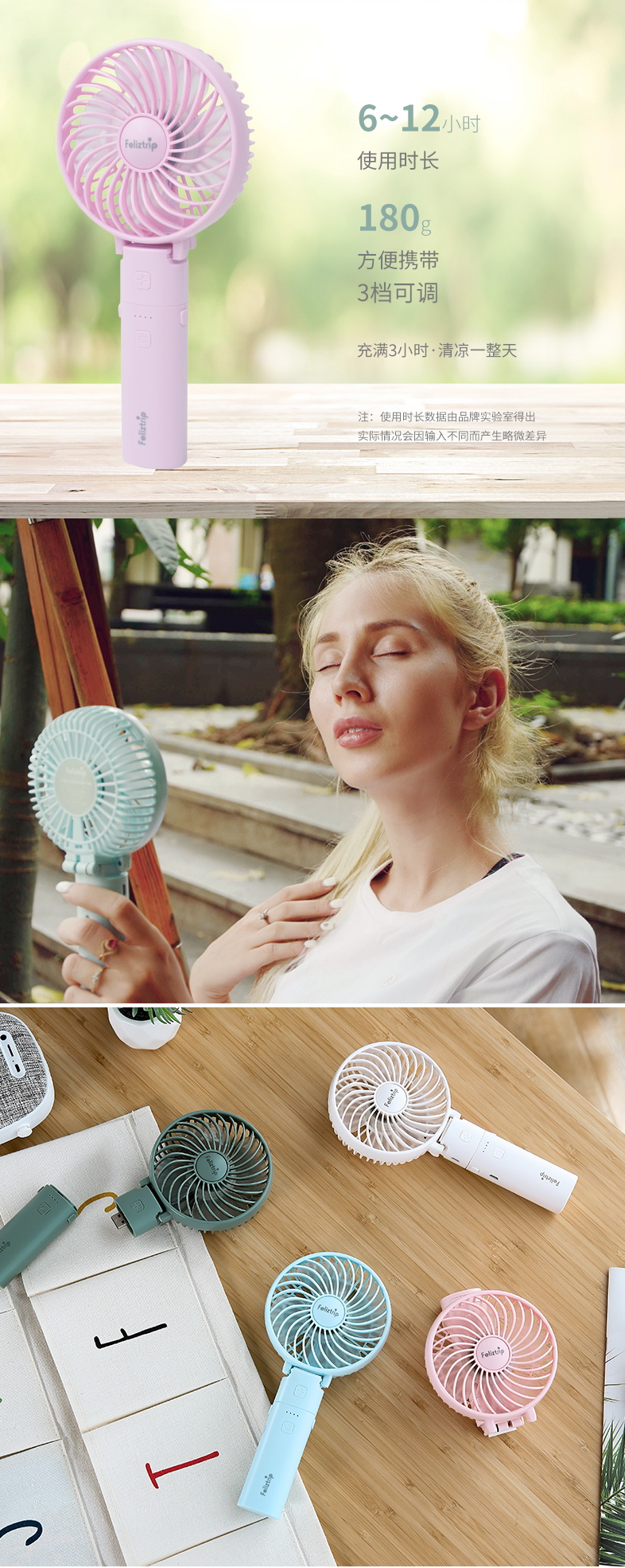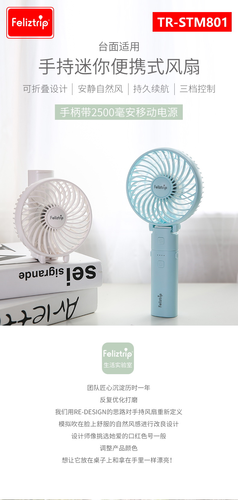 Feliztrip斐利斯 便携时尚可折叠带2500毫安充电宝USB迷你小风扇三挡风力 TR-STM801