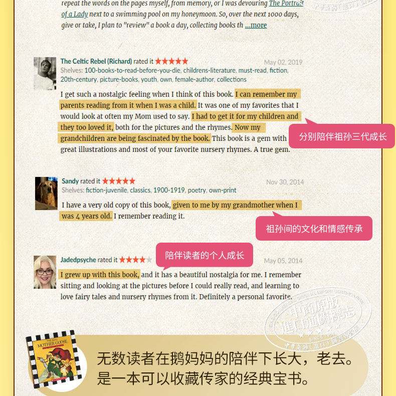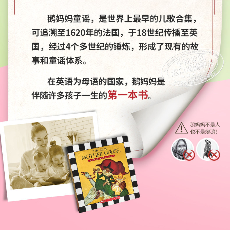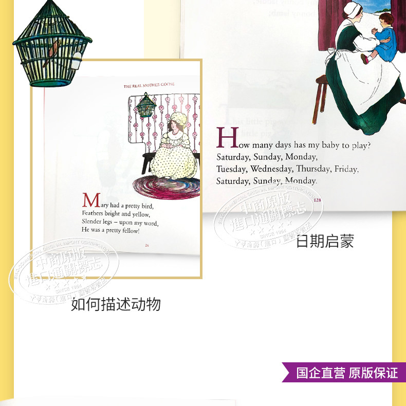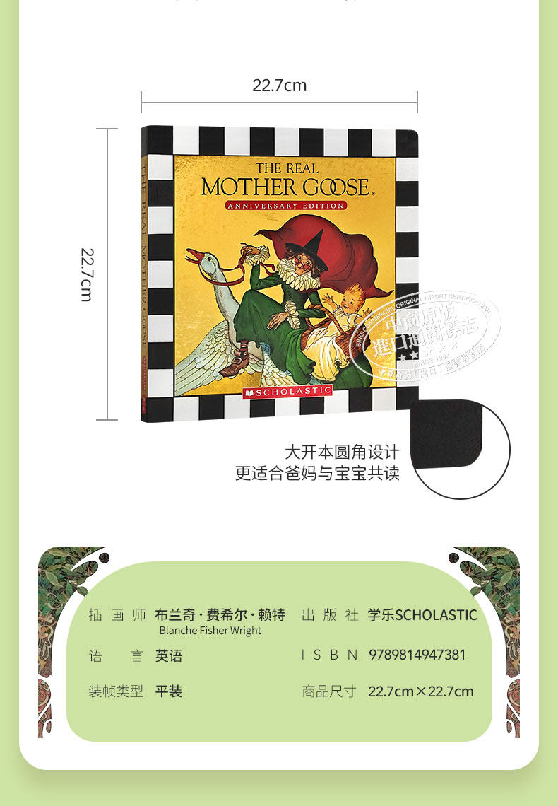 【中商原版】鹅妈妈 The Real Mother Goose 点读版 经典童谣入门韵律启蒙故事绘本 Blanche Fisher Wright 精装 6-9岁