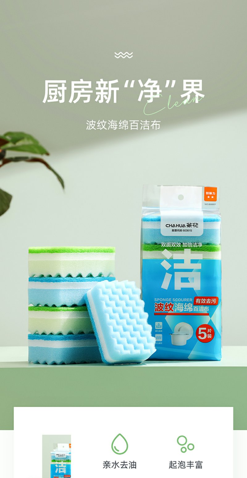 【茶花】波纹海绵百洁布洗碗擦