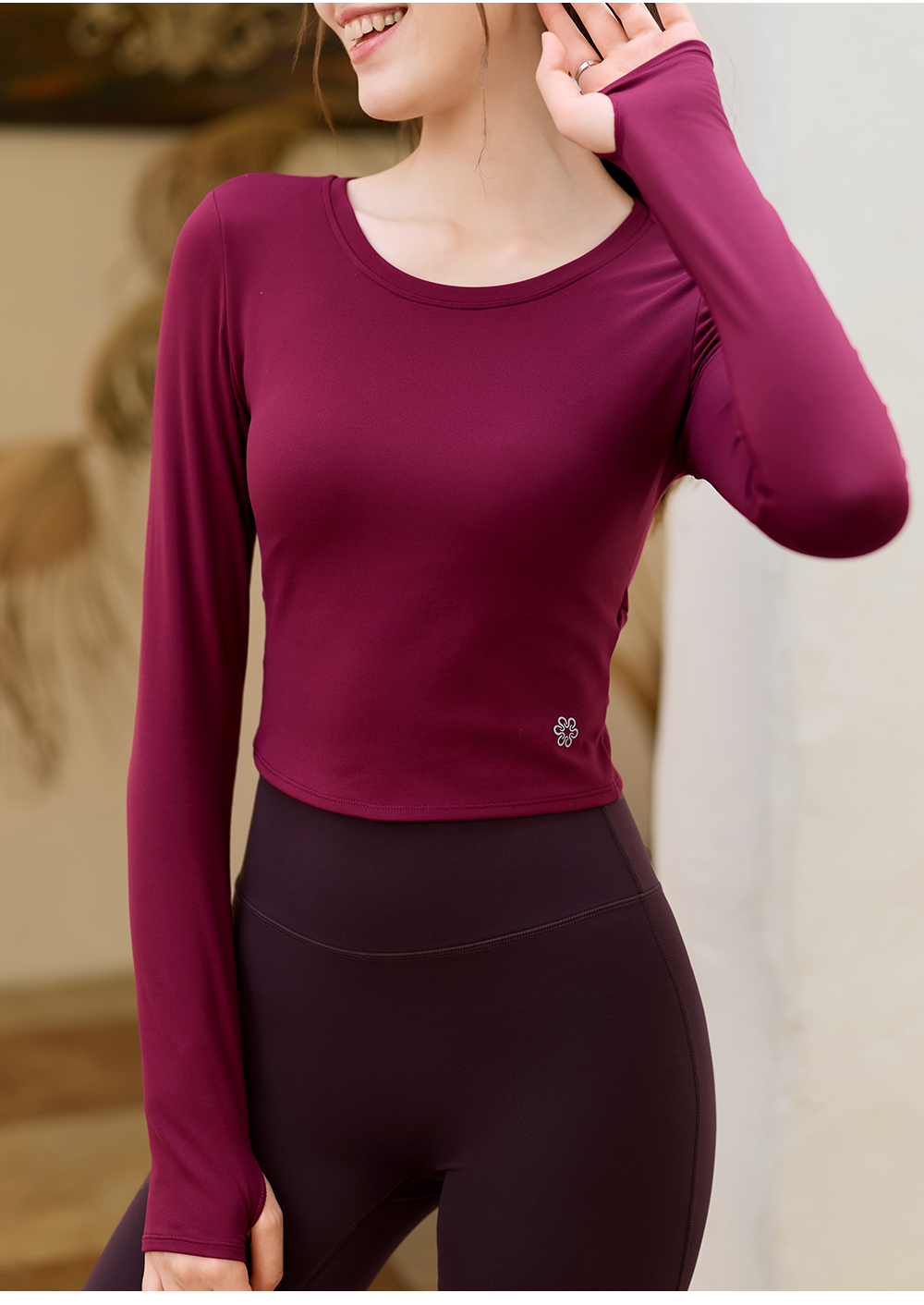 FC15354蕾丝拼接美背长袖
