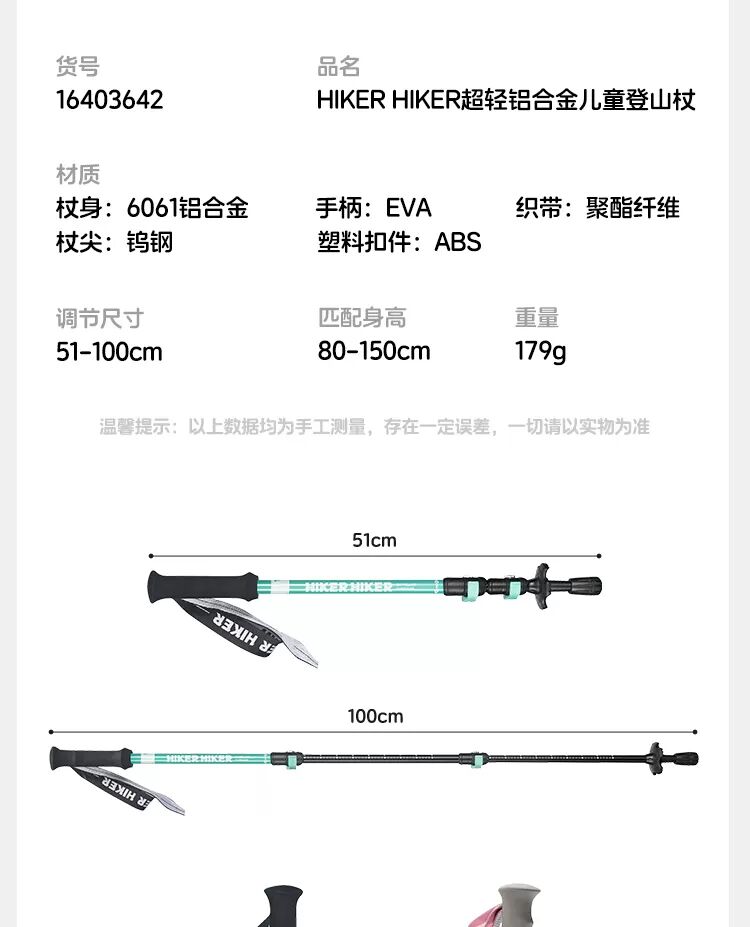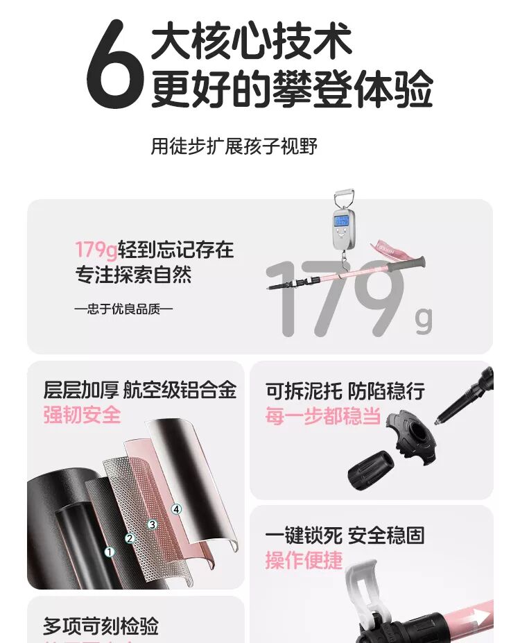 【HIKER】伯希和户外儿童登山杖超轻伸缩爬山装备徒步手杖拐杖