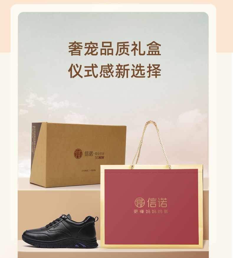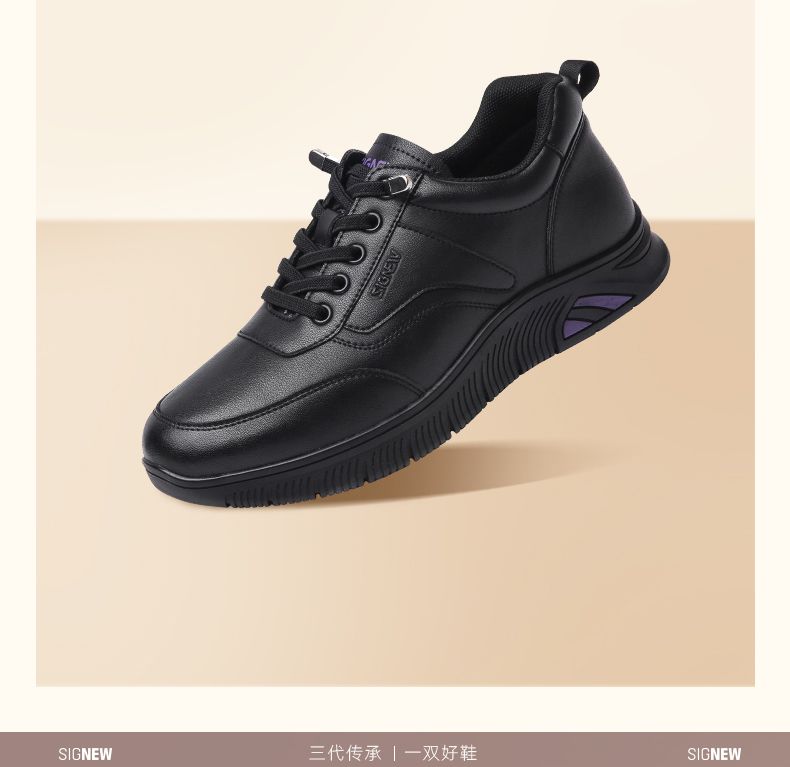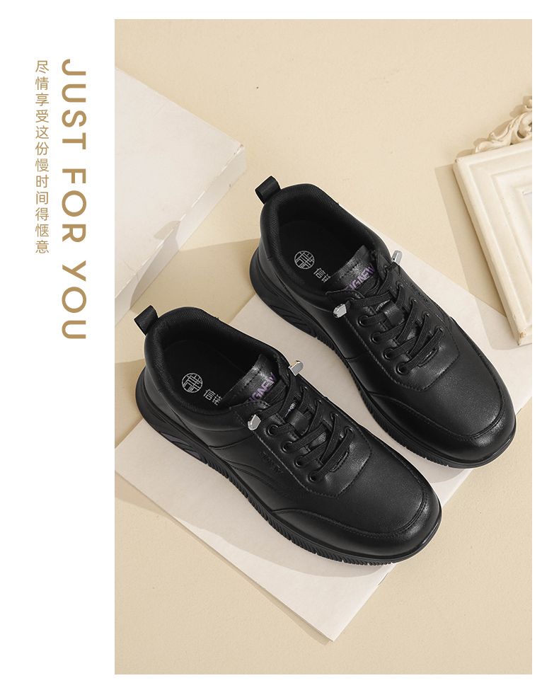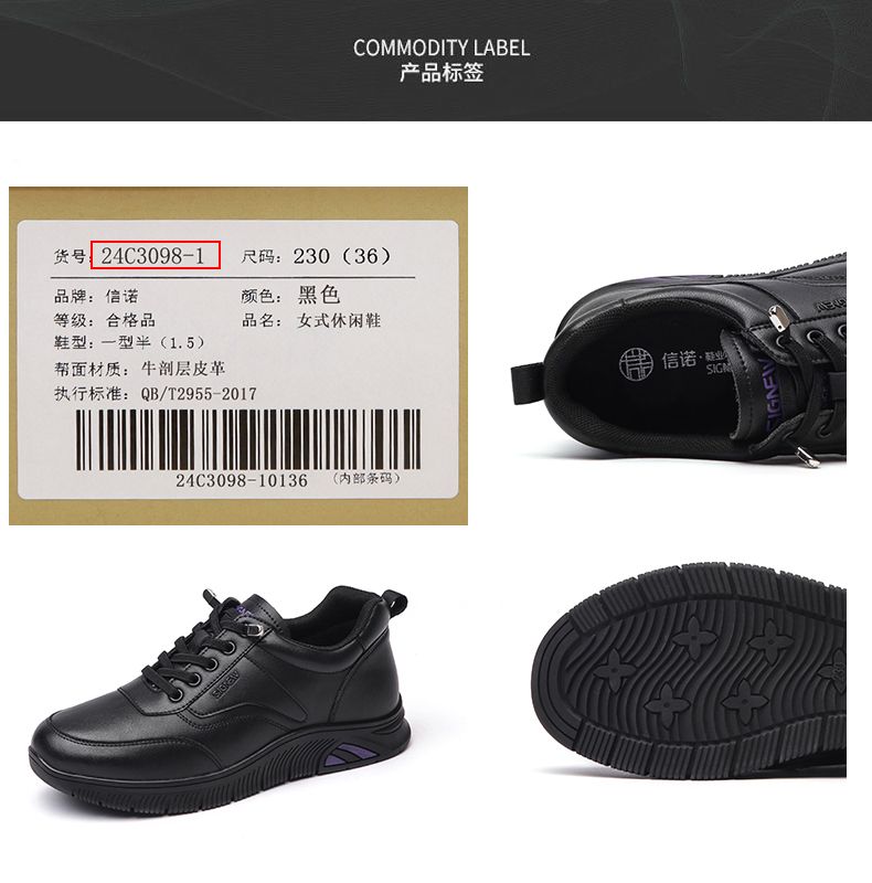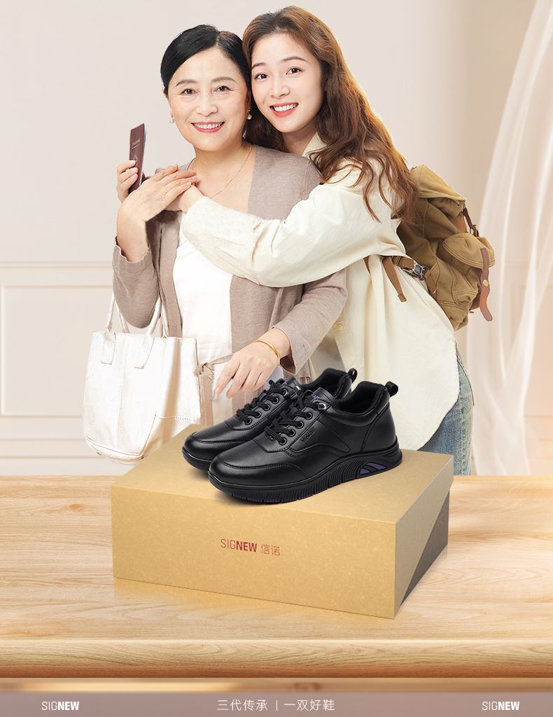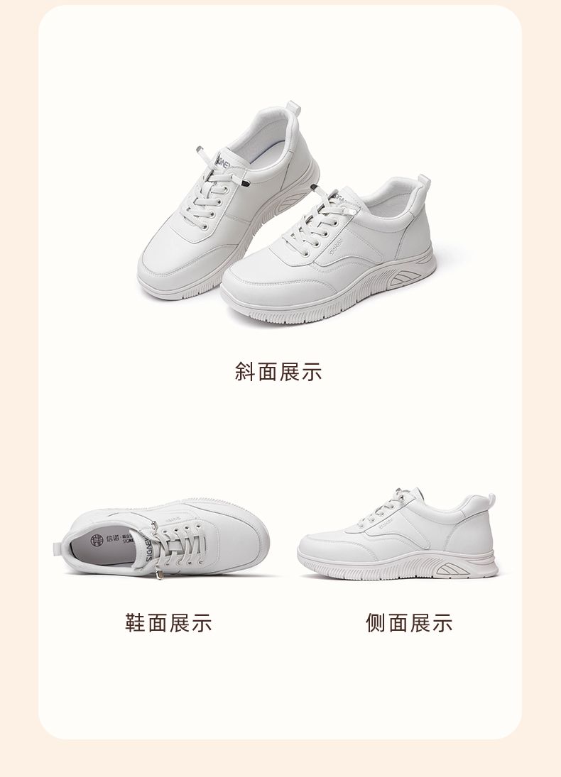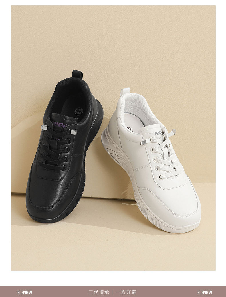 信诺真皮舒适妈妈运动鞋2024新款春季透气软底中老年女鞋休闲皮鞋24C3098-1