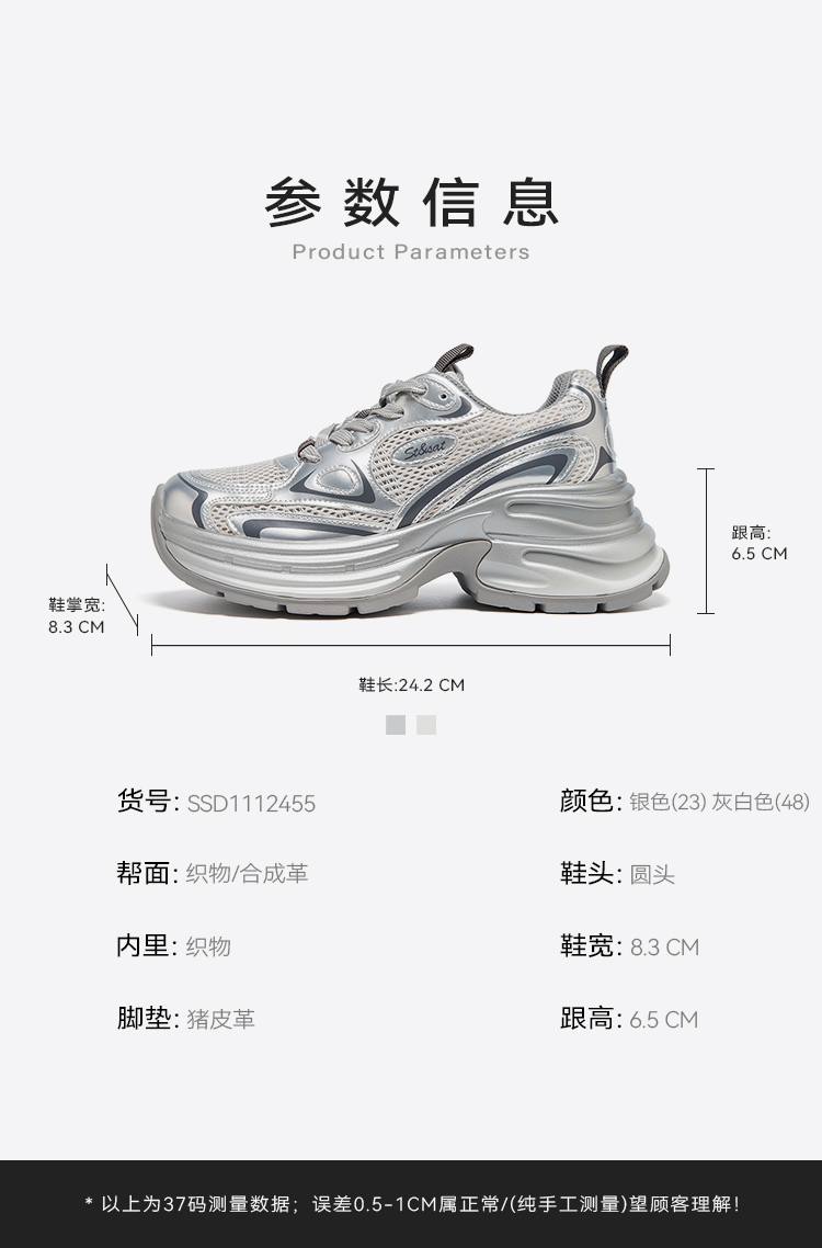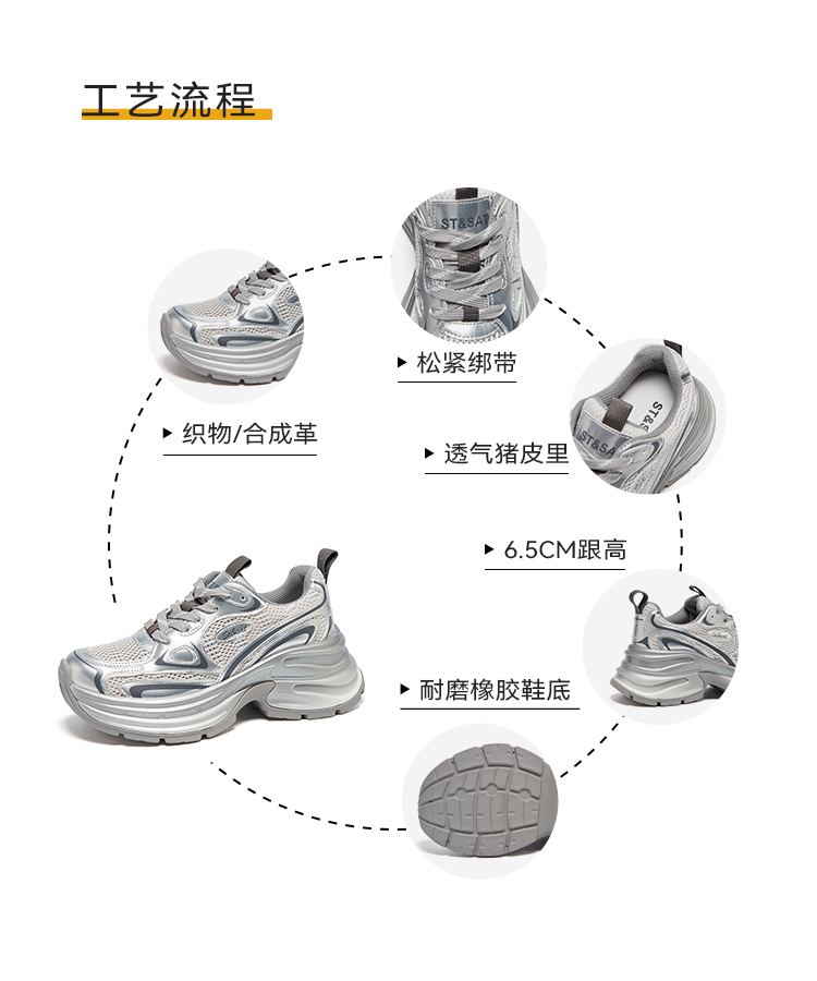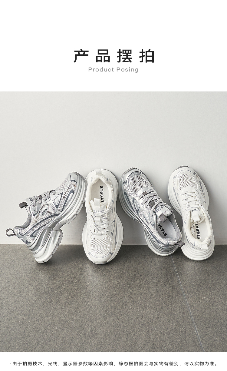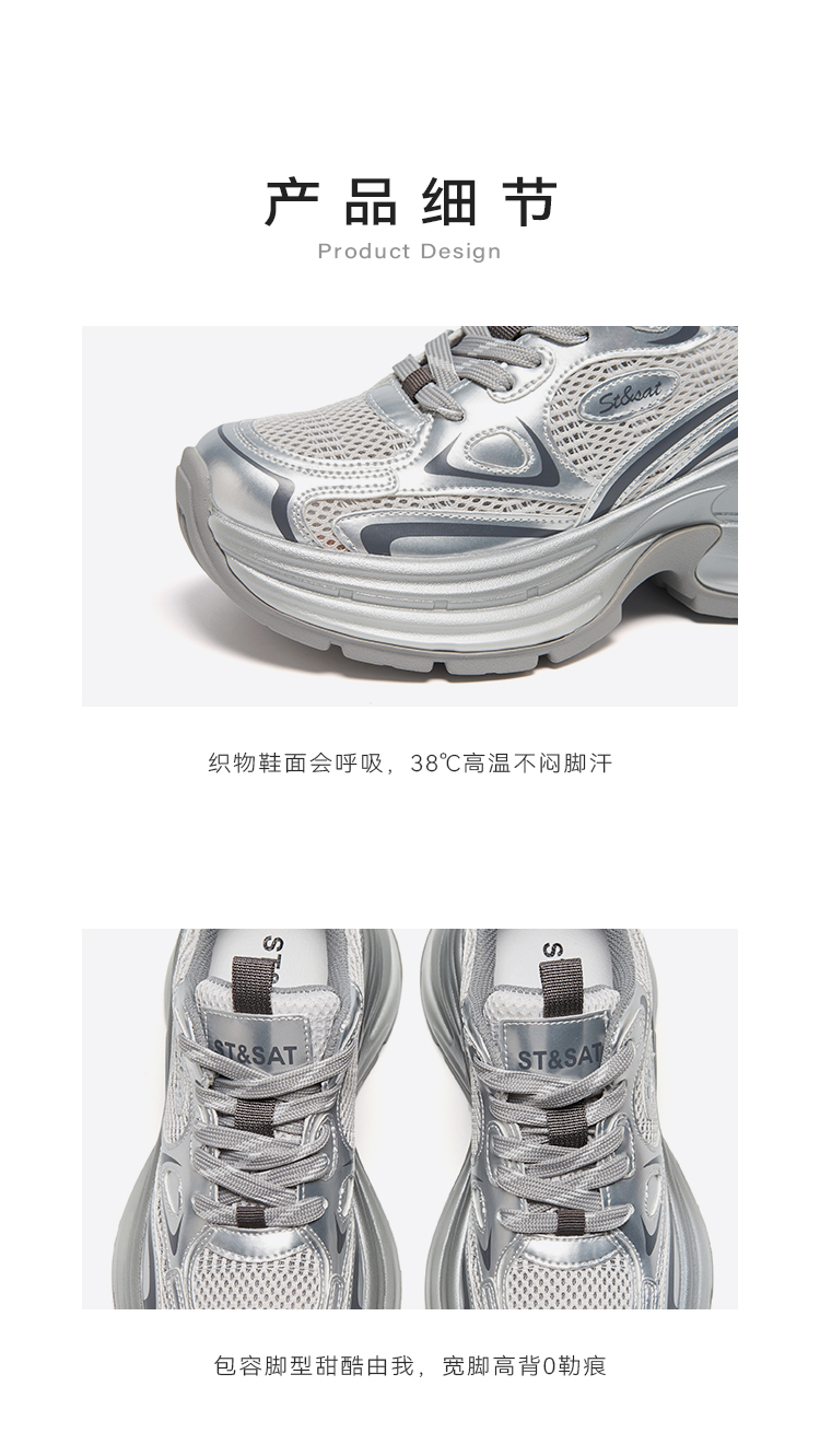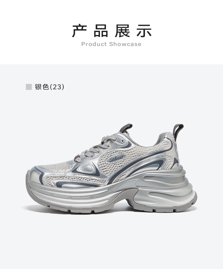 【网面透气】星期六潮酷银系厚底运动老爹鞋SSD1112455