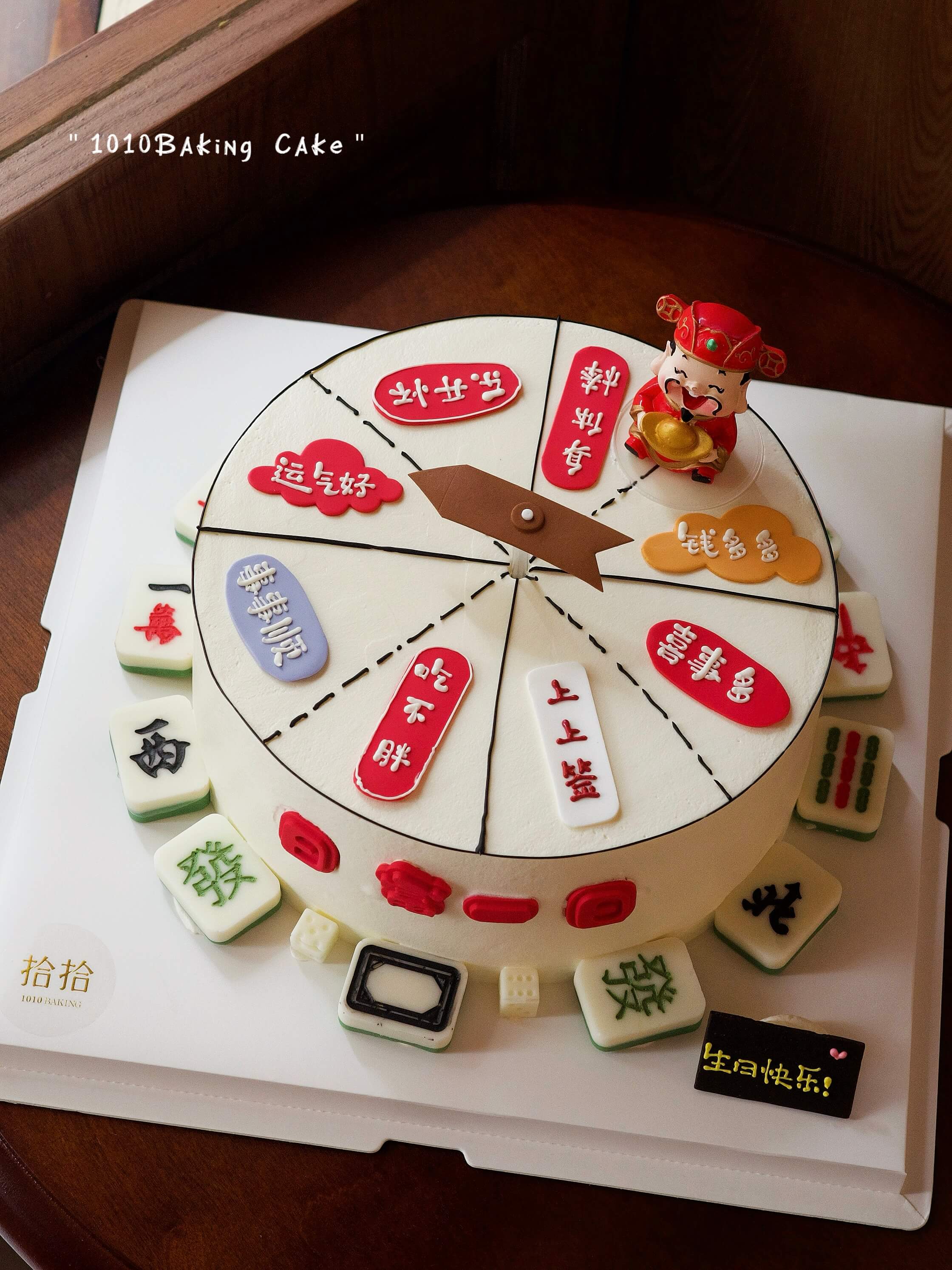 「十三幺麻将+好运大转盘」翻糖巧克力·100%动物奶油(附图8寸·提前48预订)