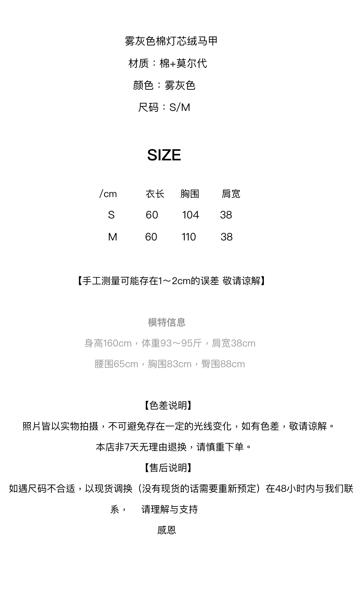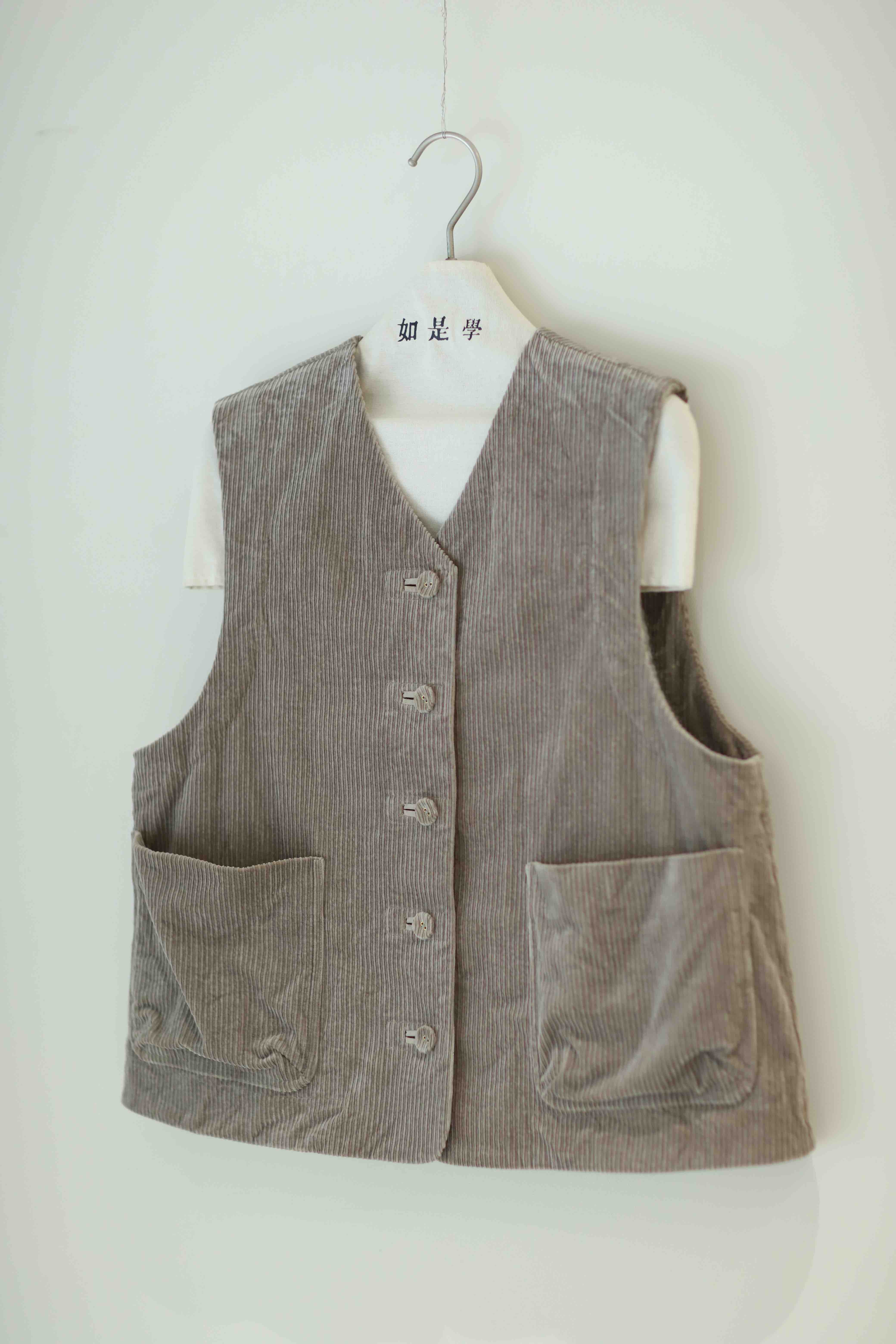 黄阿福 雾灰色棉灯芯绒马甲