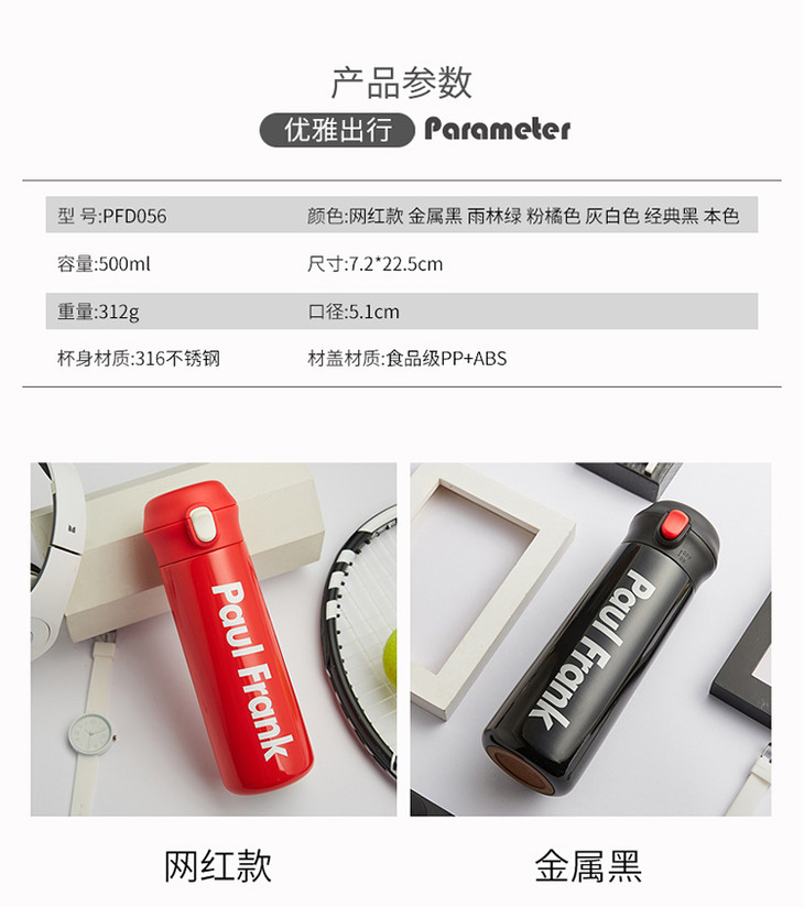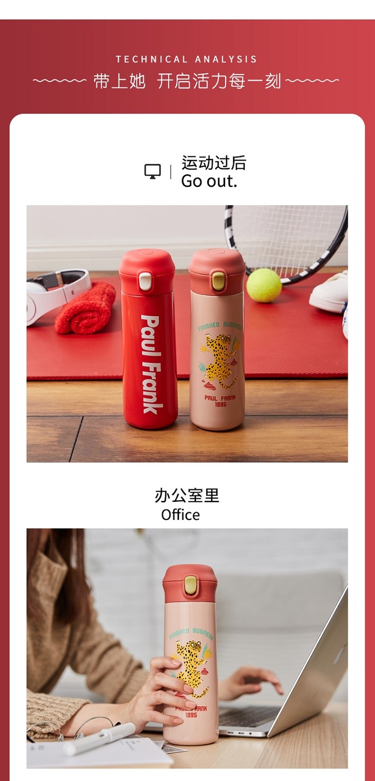 大嘴猴(Paul Frank)PFD056 不锈钢保温杯500ML女便携学生清新文艺水杯大容量车载茶杯子 网红款168