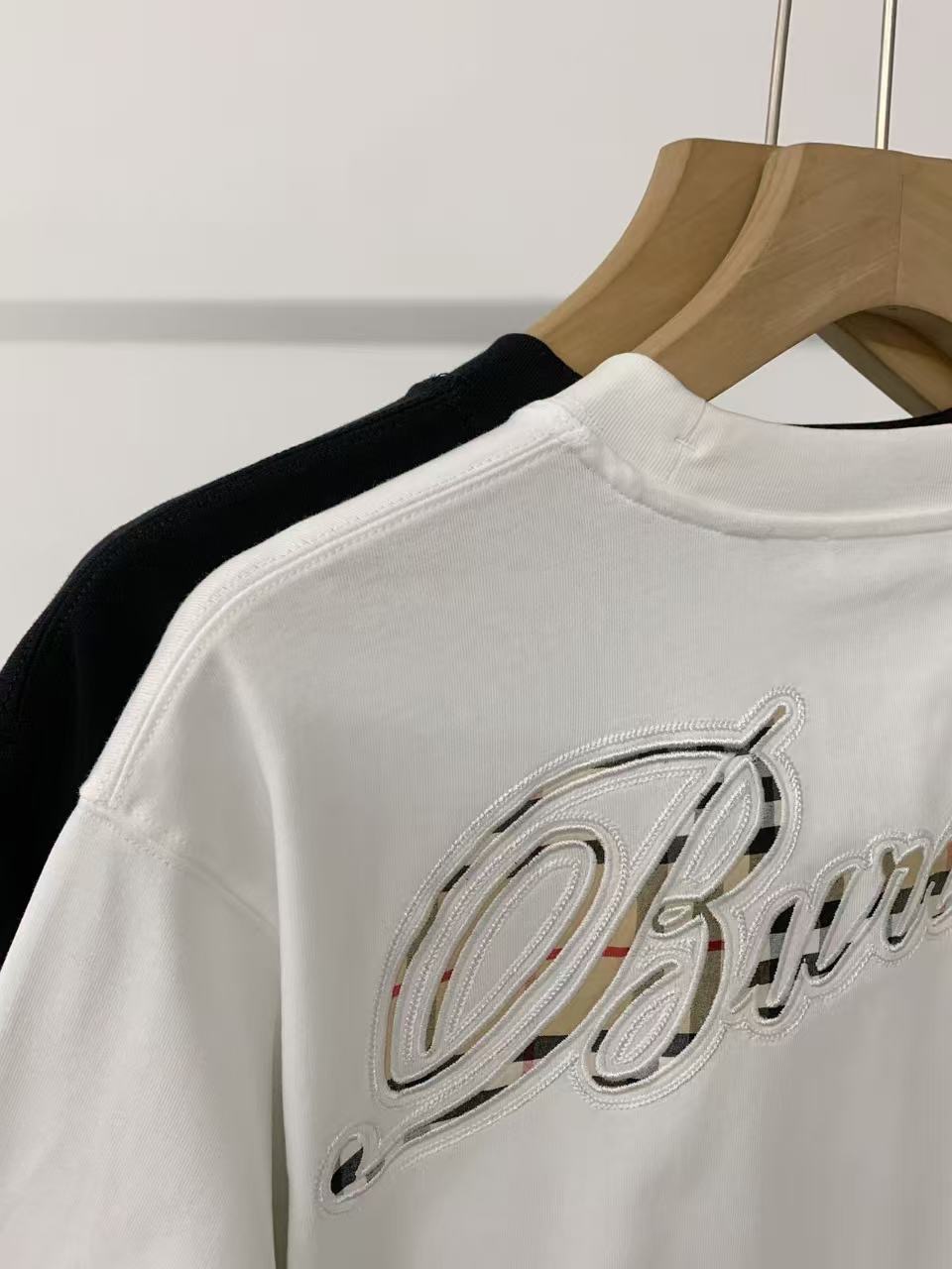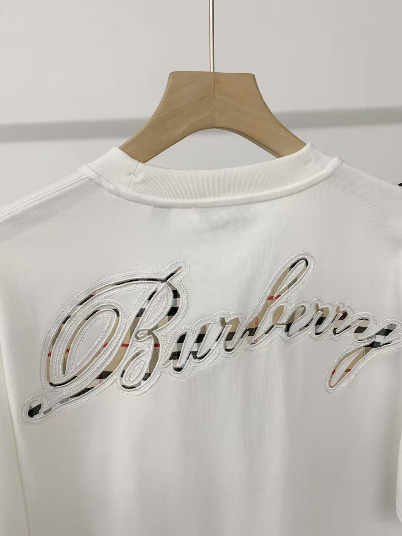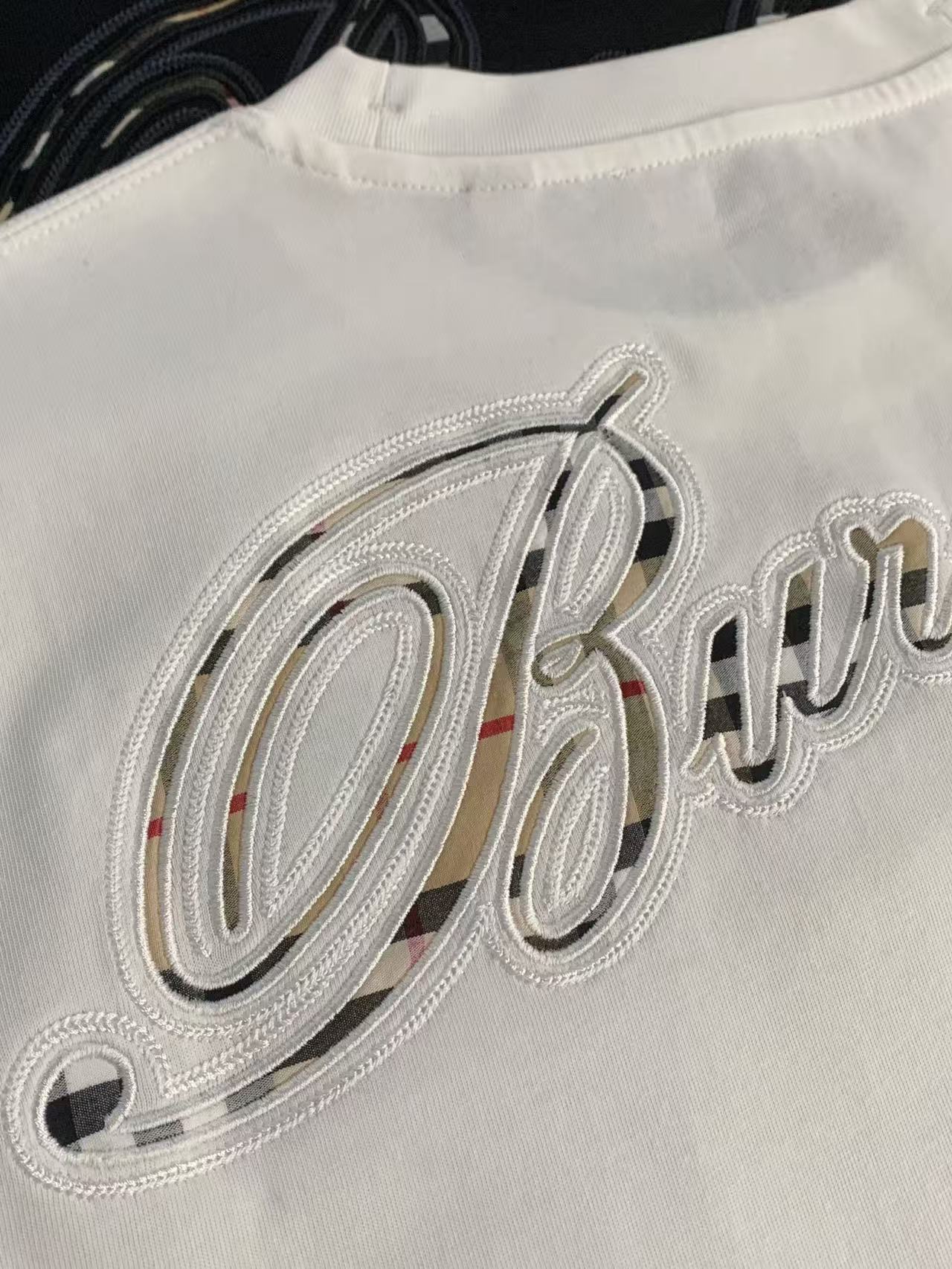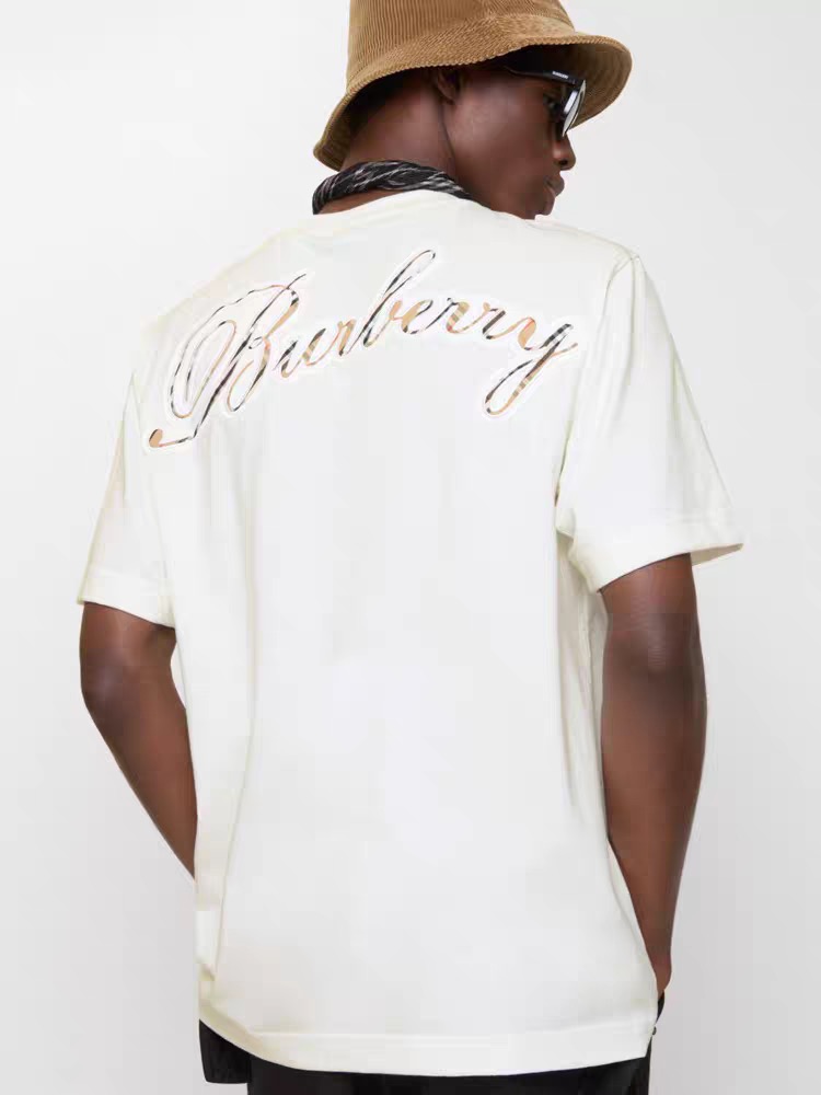 字母LOGO标识图藤绘画工艺圆领短袖T恤。 胸前小LOGO字母经典低调刺绣,后背格子贴布绣,百年经典花型! 面料手感厚实有型舒适,且有一定的自重感。