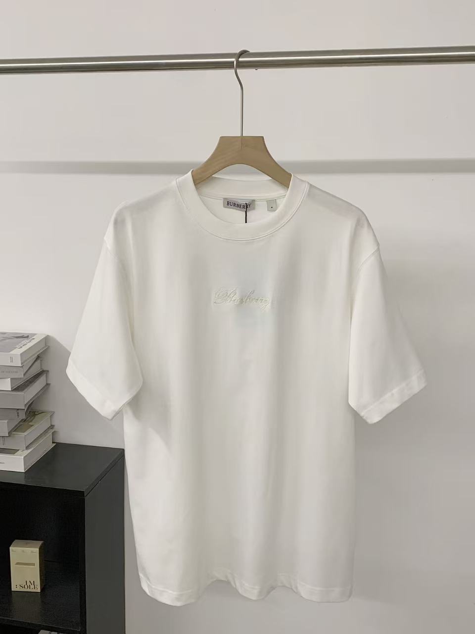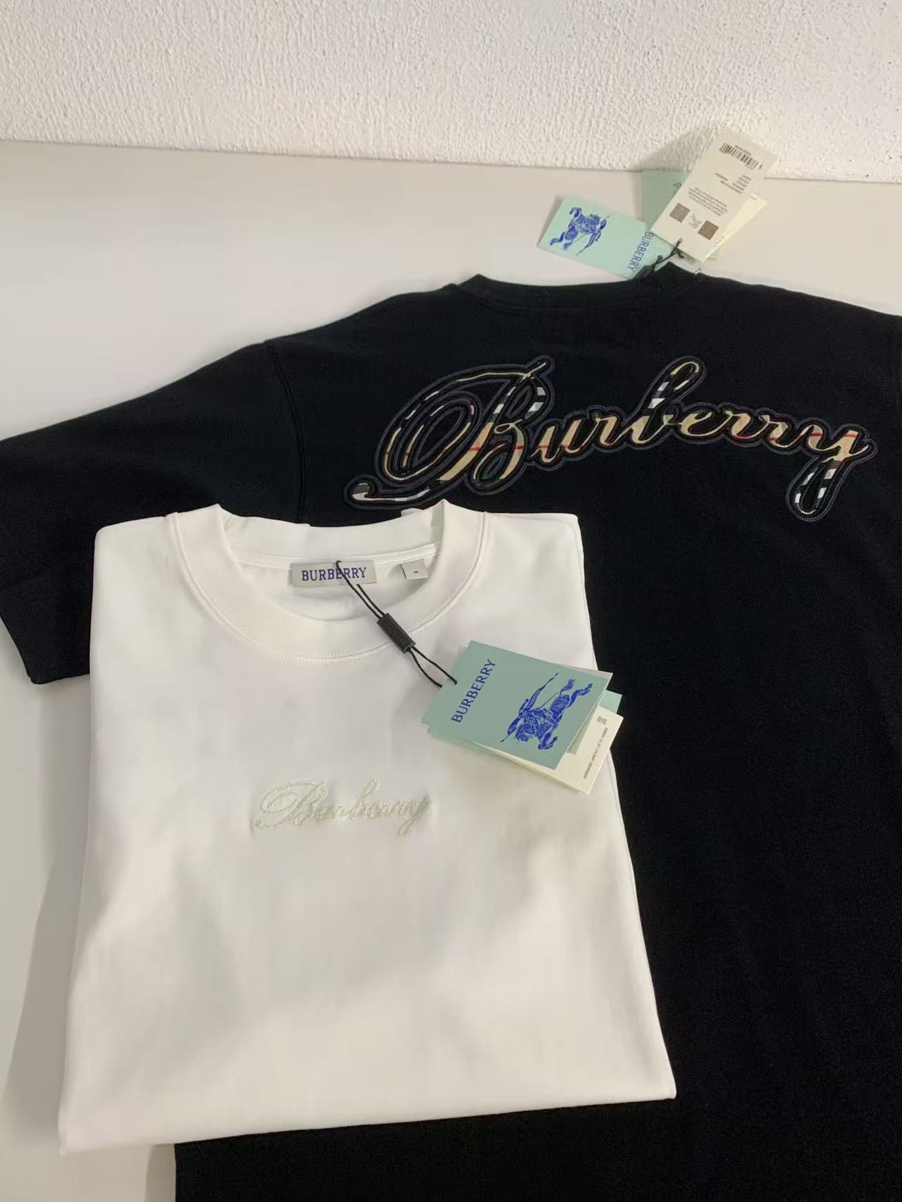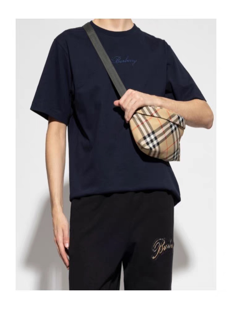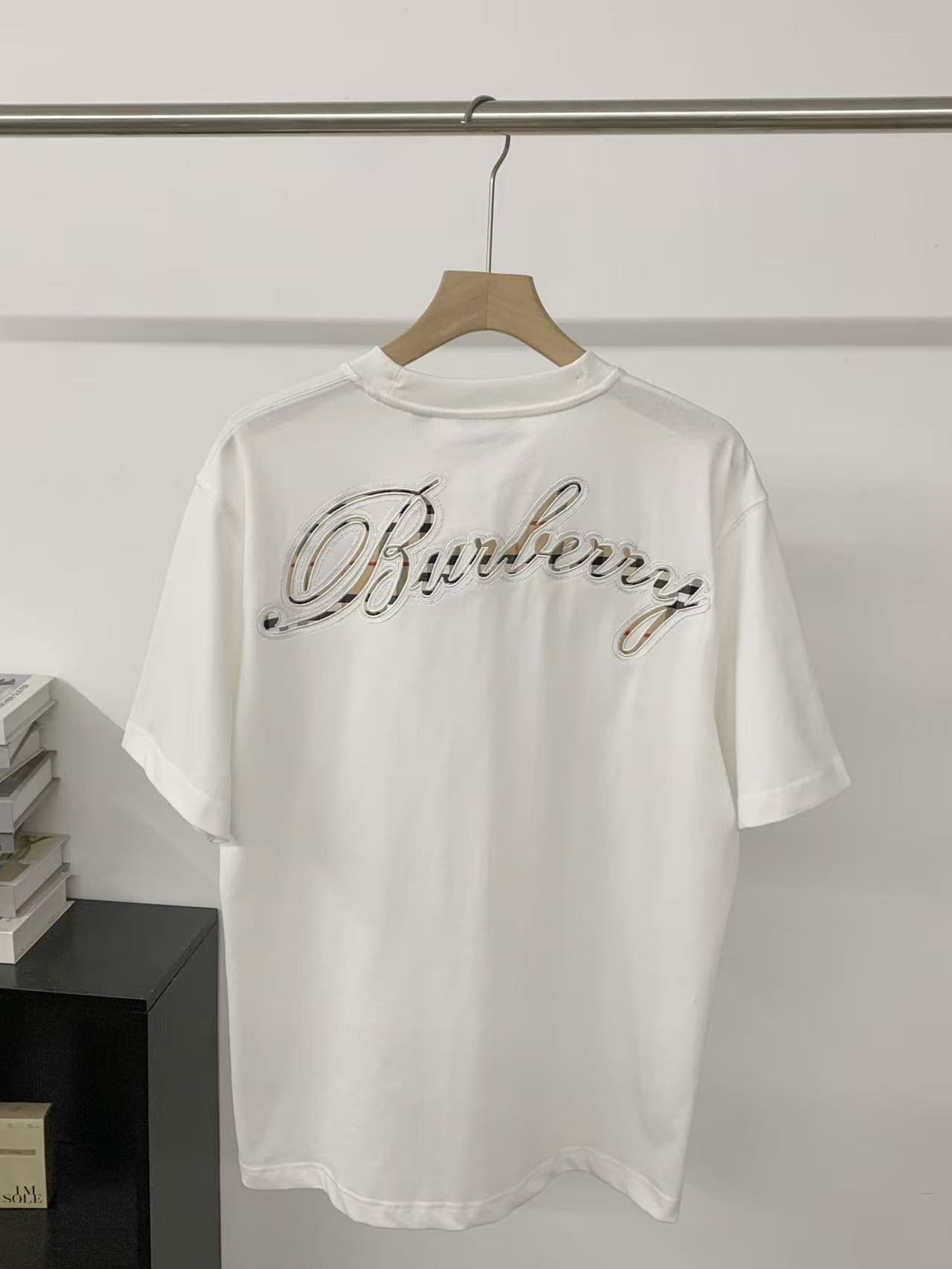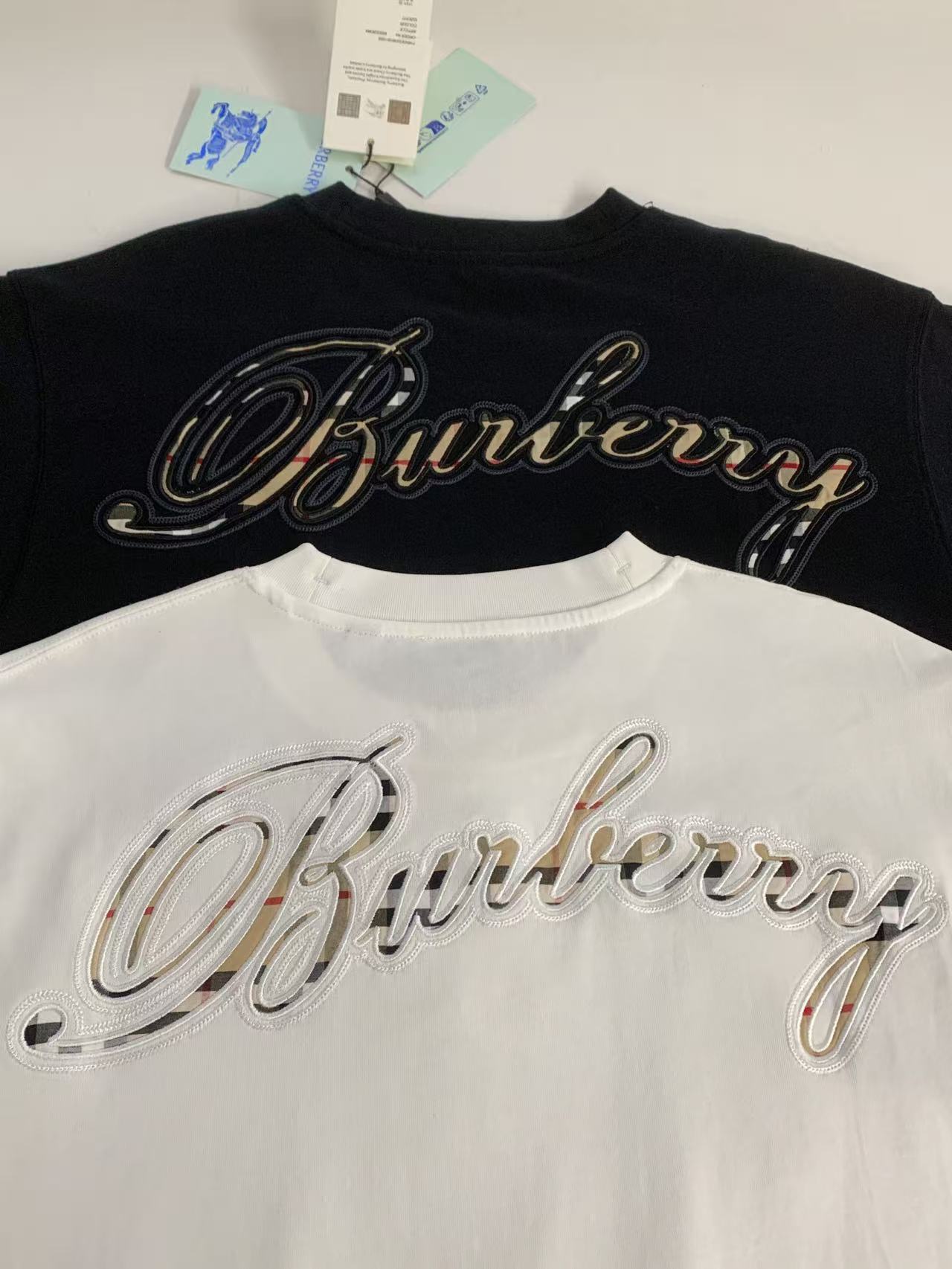 字母LOGO标识图藤绘画工艺圆领短袖T恤。 胸前小LOGO字母经典低调刺绣,后背格子贴布绣,百年经典花型! 面料手感厚实有型舒适,且有一定的自重感。