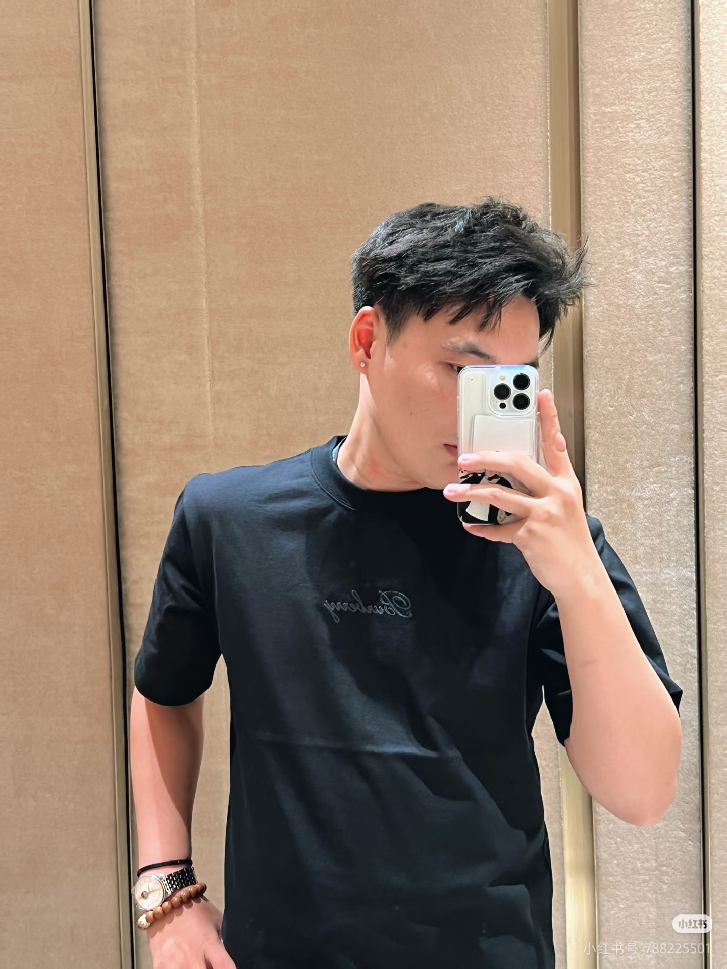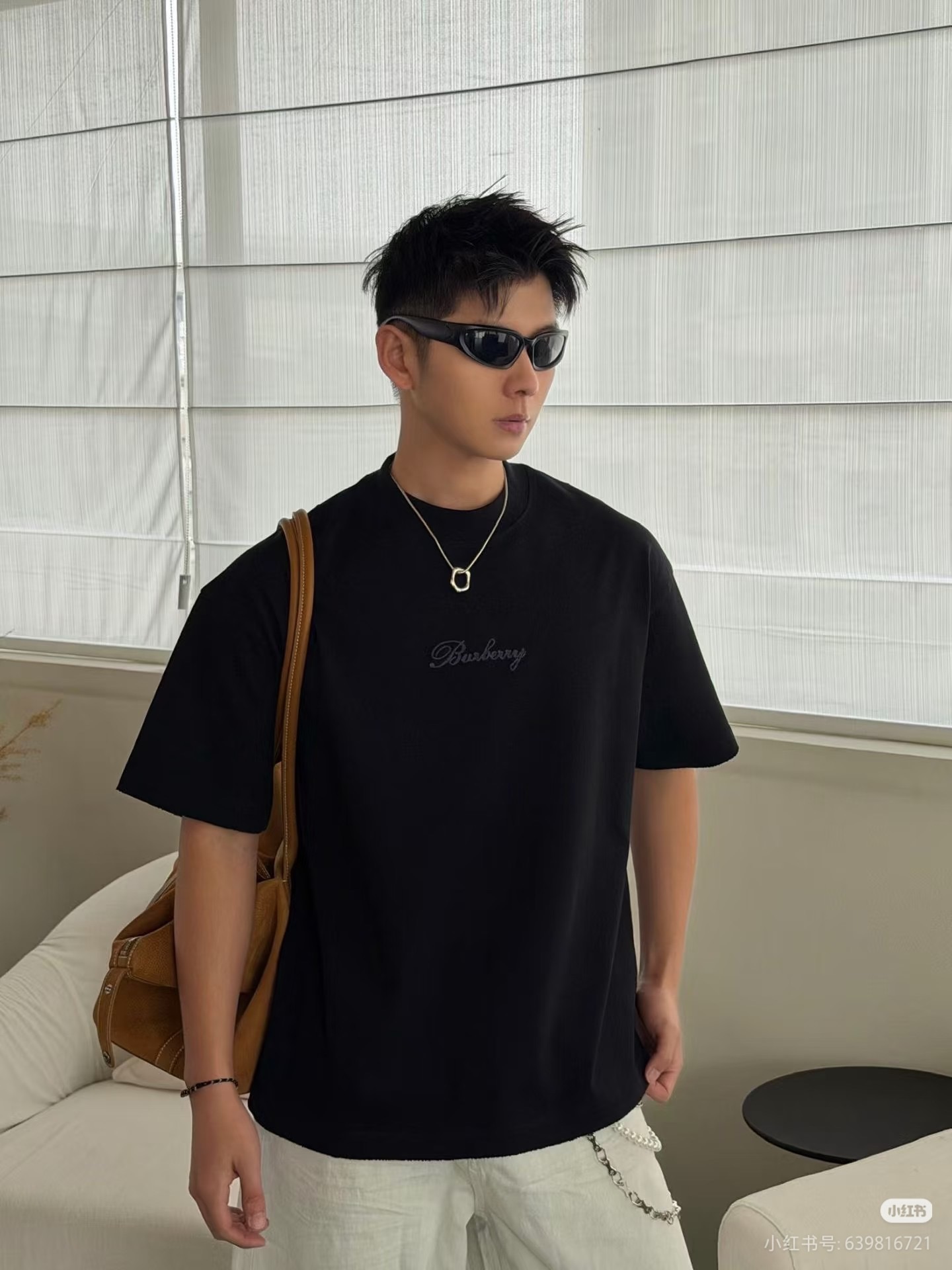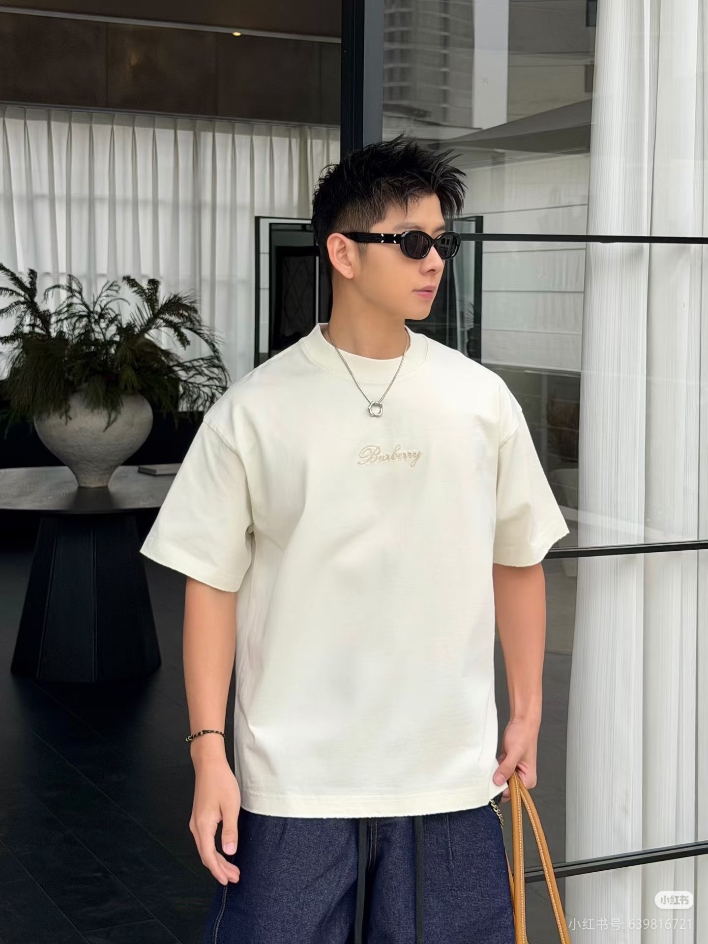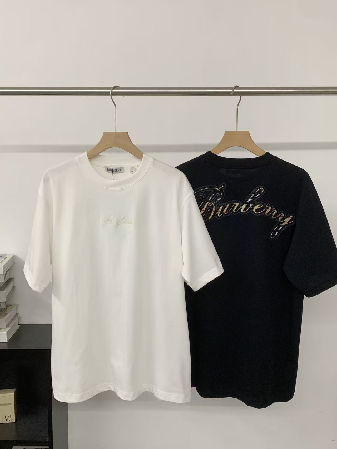 字母LOGO标识图藤绘画工艺圆领短袖T恤。 胸前小LOGO字母经典低调刺绣,后背格子贴布绣,百年经典花型! 面料手感厚实有型舒适,且有一定的自重感。