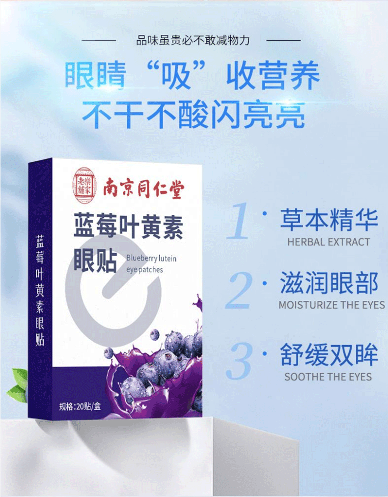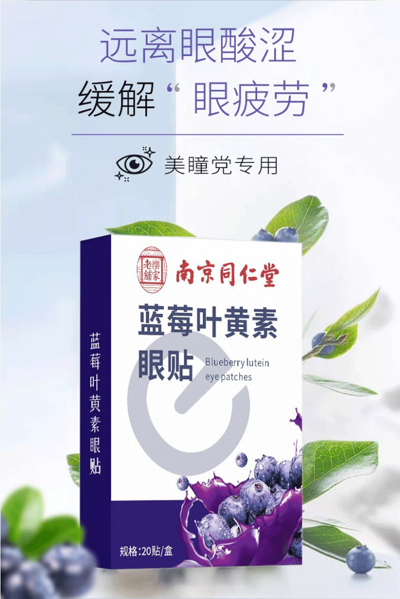 护眼贴 南京同仁堂眼贴蓝莓叶黄素冷敷眼贴青少年艾草护眼贴
