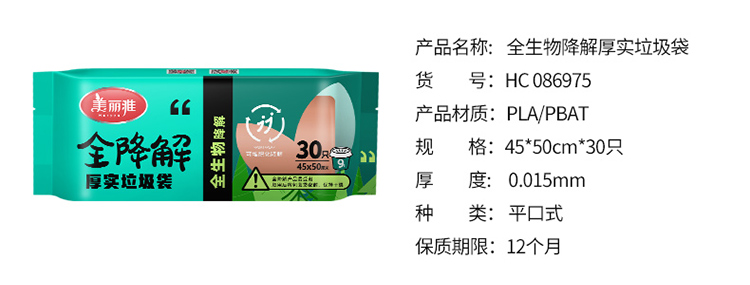 【批发】美丽雅全降解厚实袋45X50垃圾袋 30个/卷