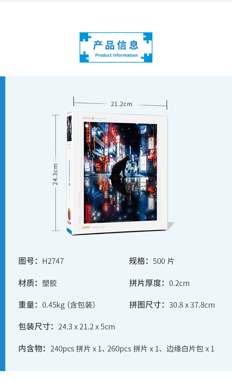 【折扣商品 不退不换】500片 平面拼图 塑料拼图 H2747 JeffreyHu-Stray Cat